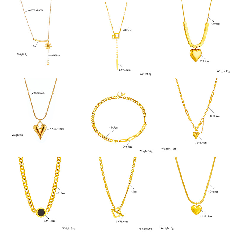 Home > New Arrival > Fashion niche design minimalist hip-hop punk metal engraved heart square round pendant necklace
