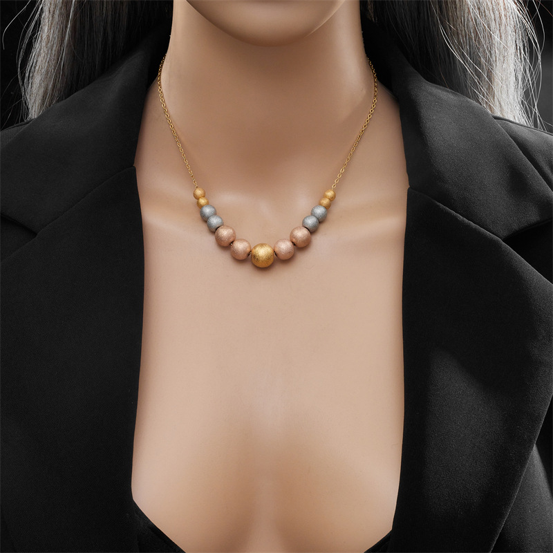 Home > New Arrival > Fashion niche design personalized retro colorful beaded titanium steel chain necklace
