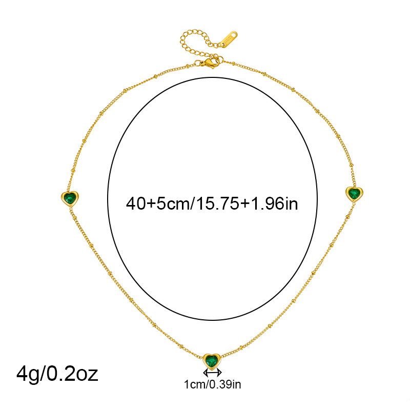 Home > New Arrival > Fashion niche style elegant stainless steel bracelet and necklace set with green diamond heart-shaped accessories