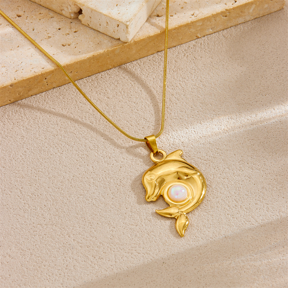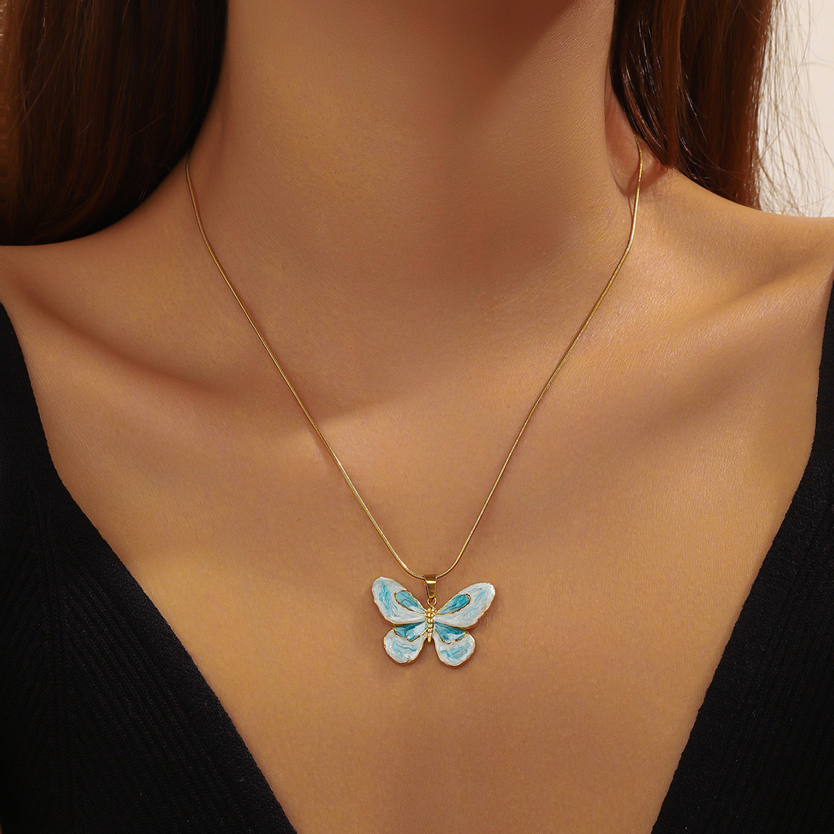 Home > New Arrival > Fashion ocean series accessories pendant gold-plated stainless steel starfish shell multi-element dripping butterfly necklace