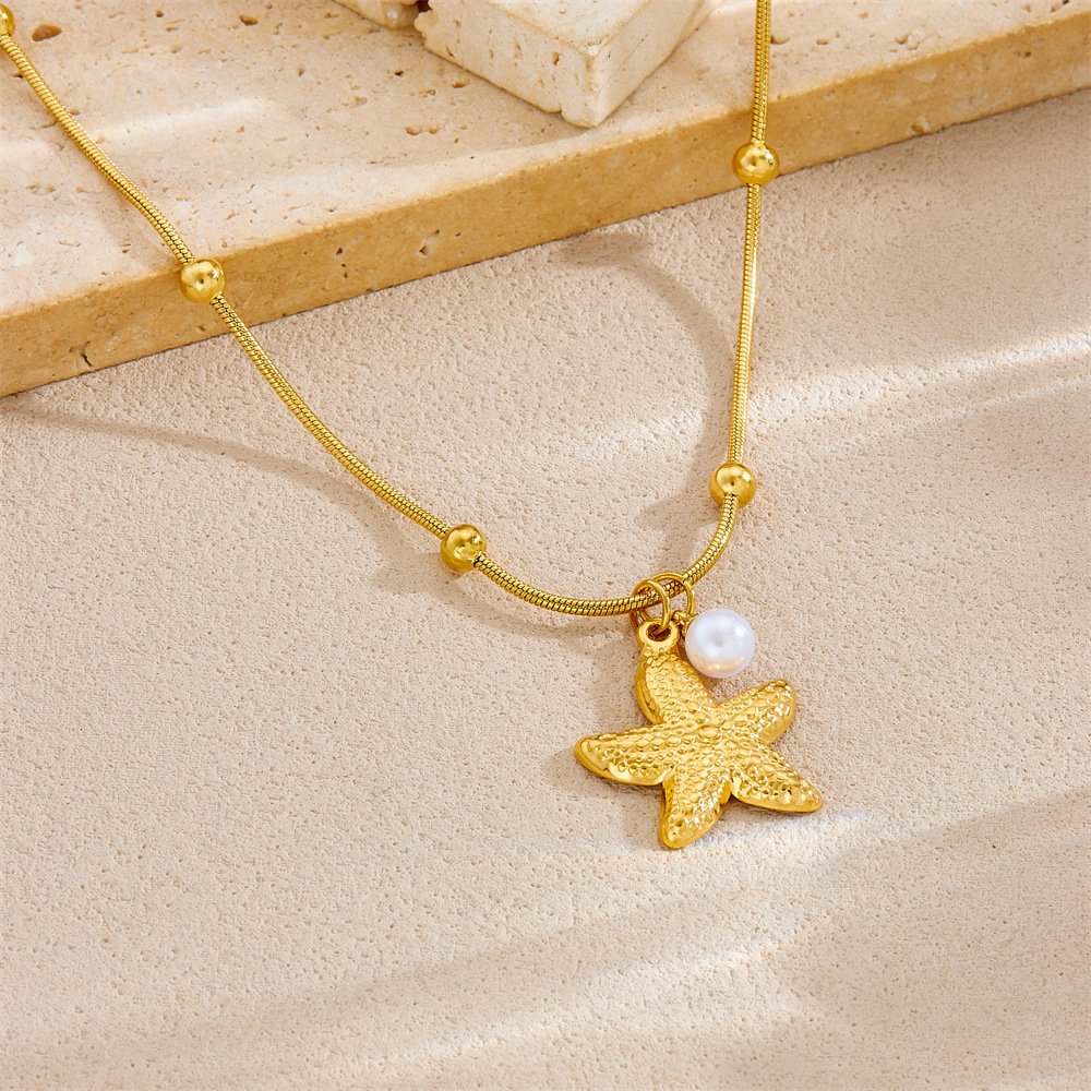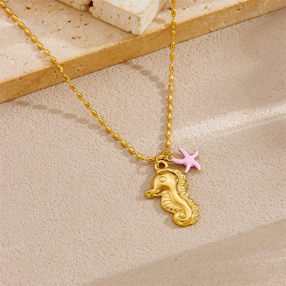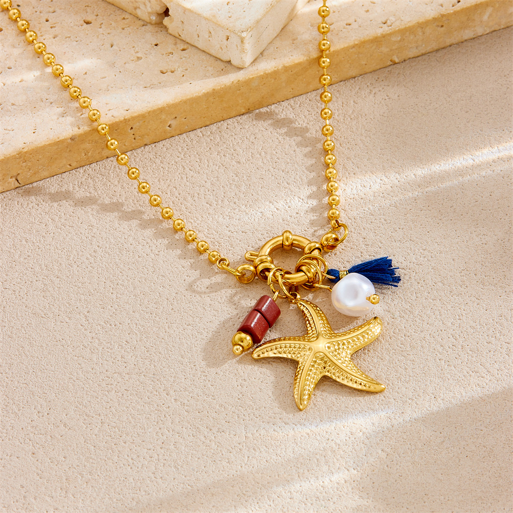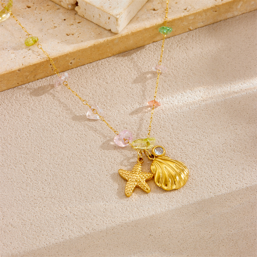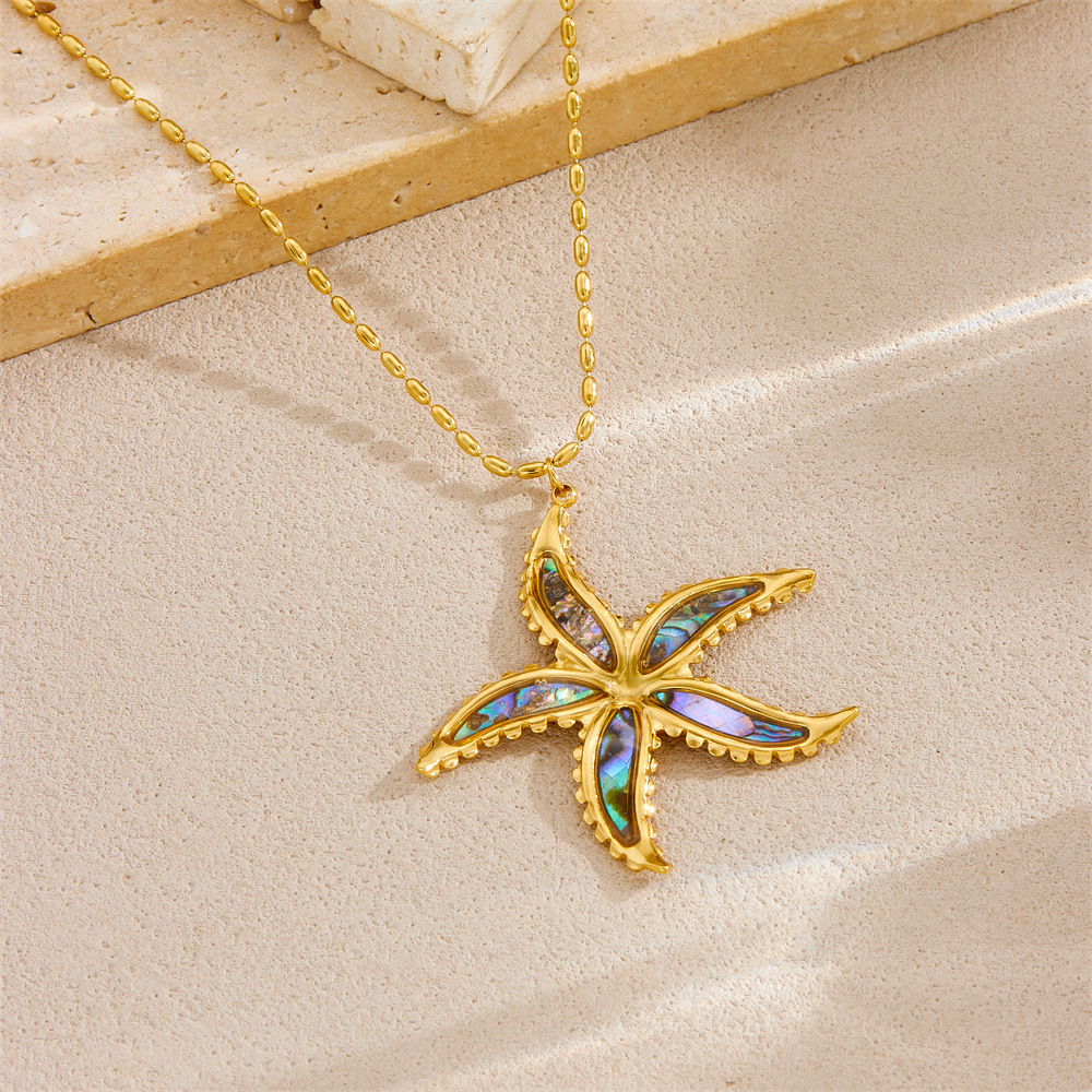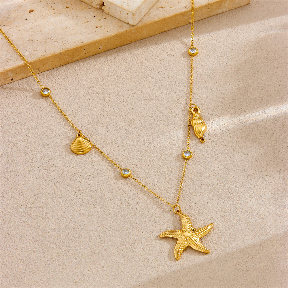 Fashion ocean series accessories pendant gold-plated stainless steel starfish shell multi-element dripping butterfly necklace