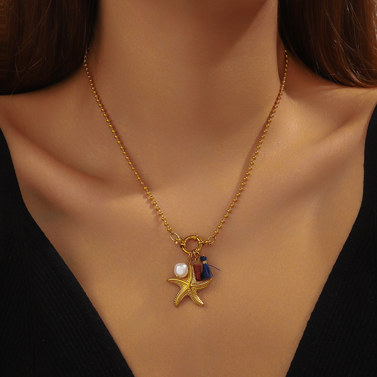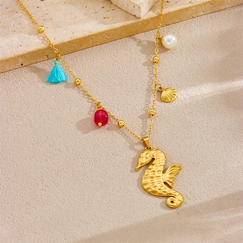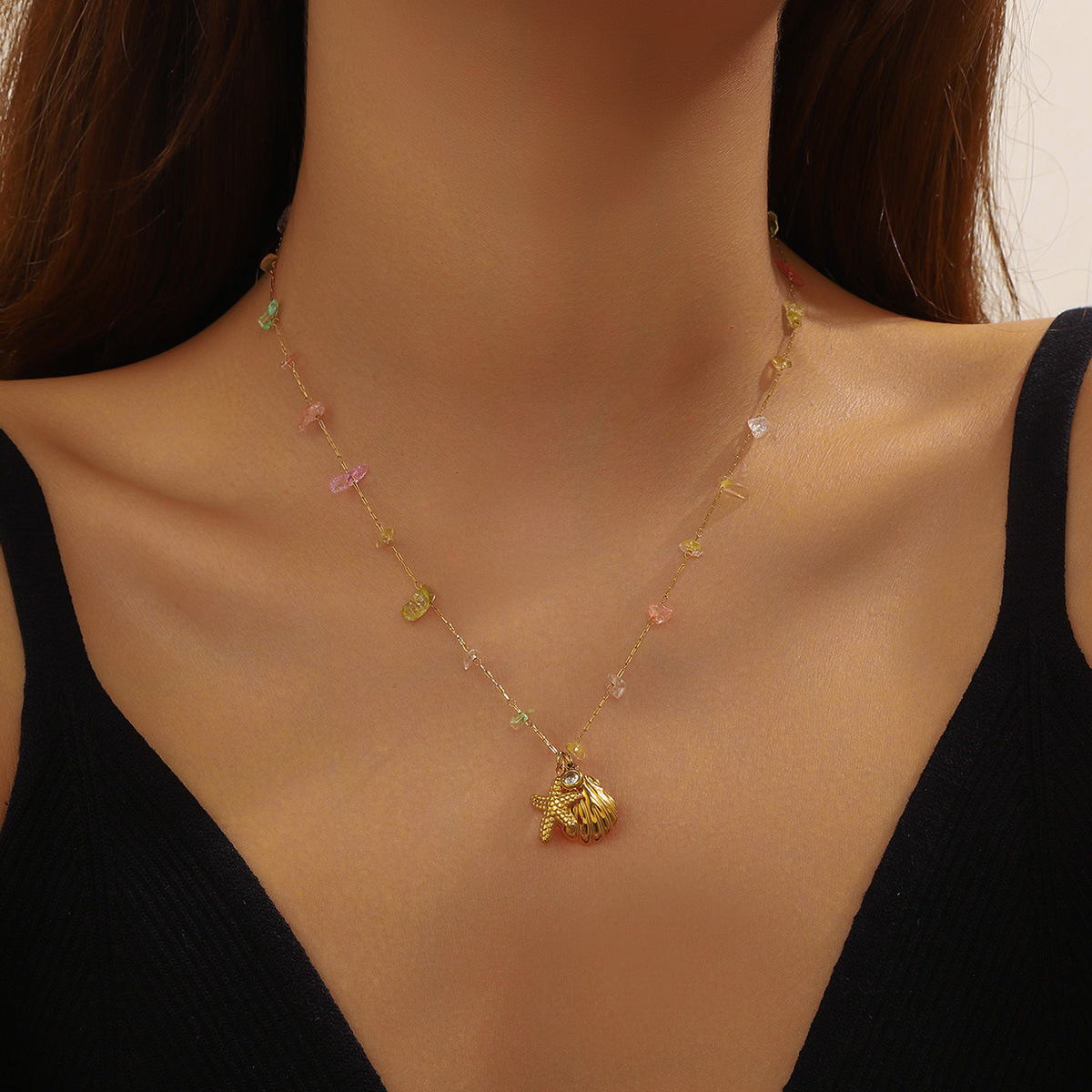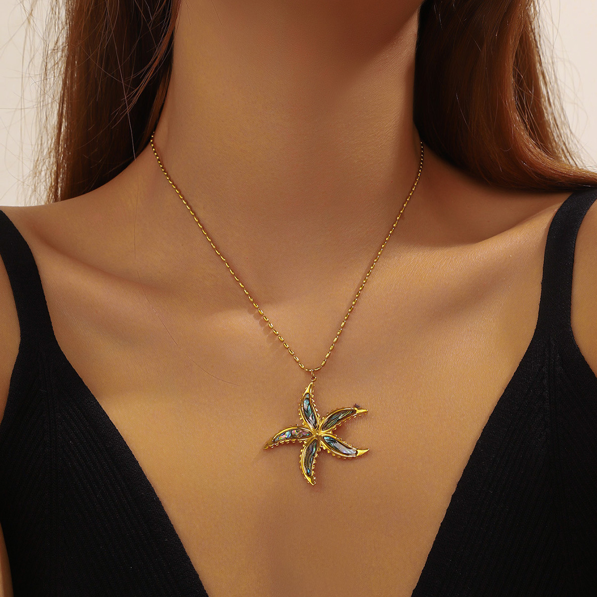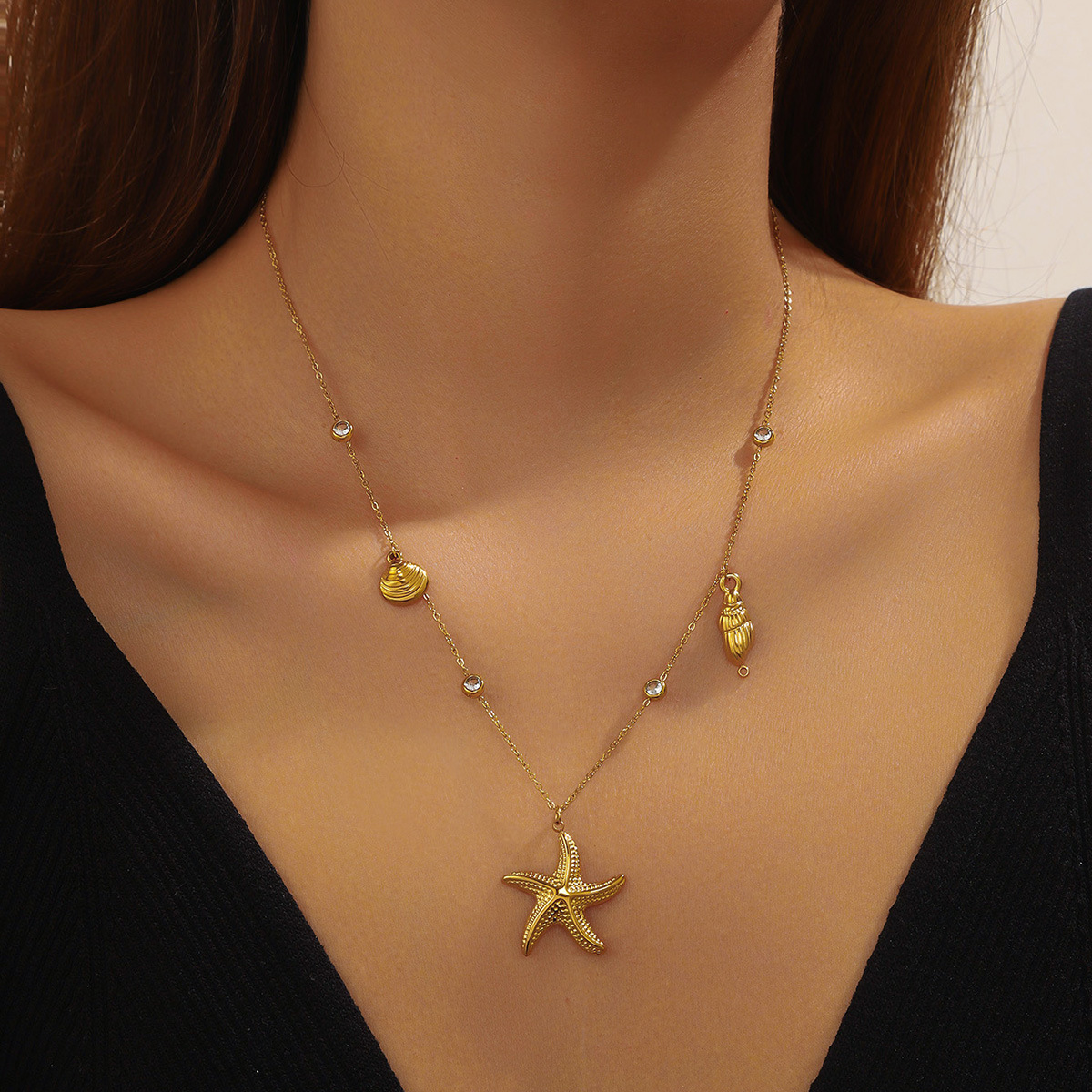 Fashion ocean series accessories pendant gold-plated stainless steel starfish shell multi-element dripping butterfly necklace