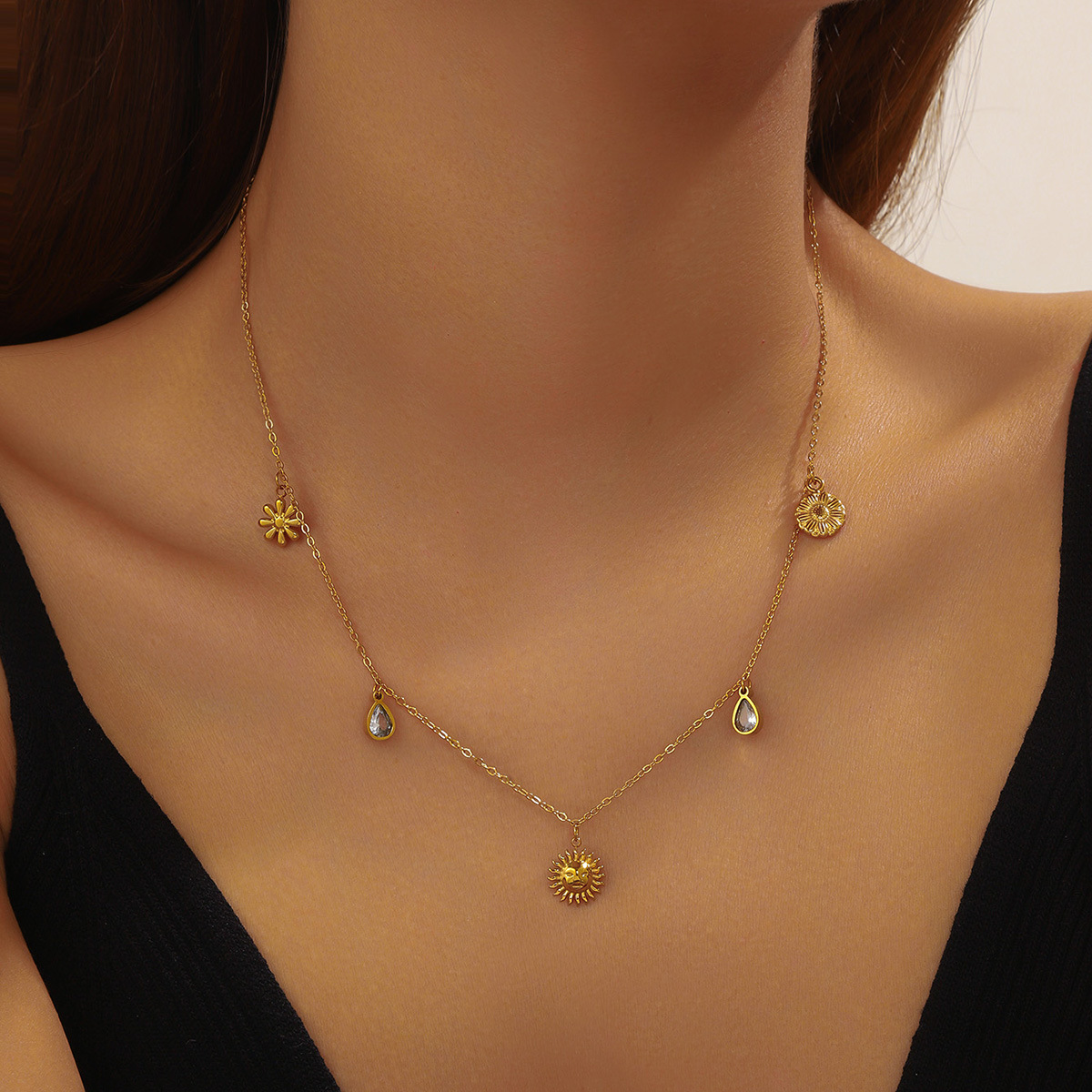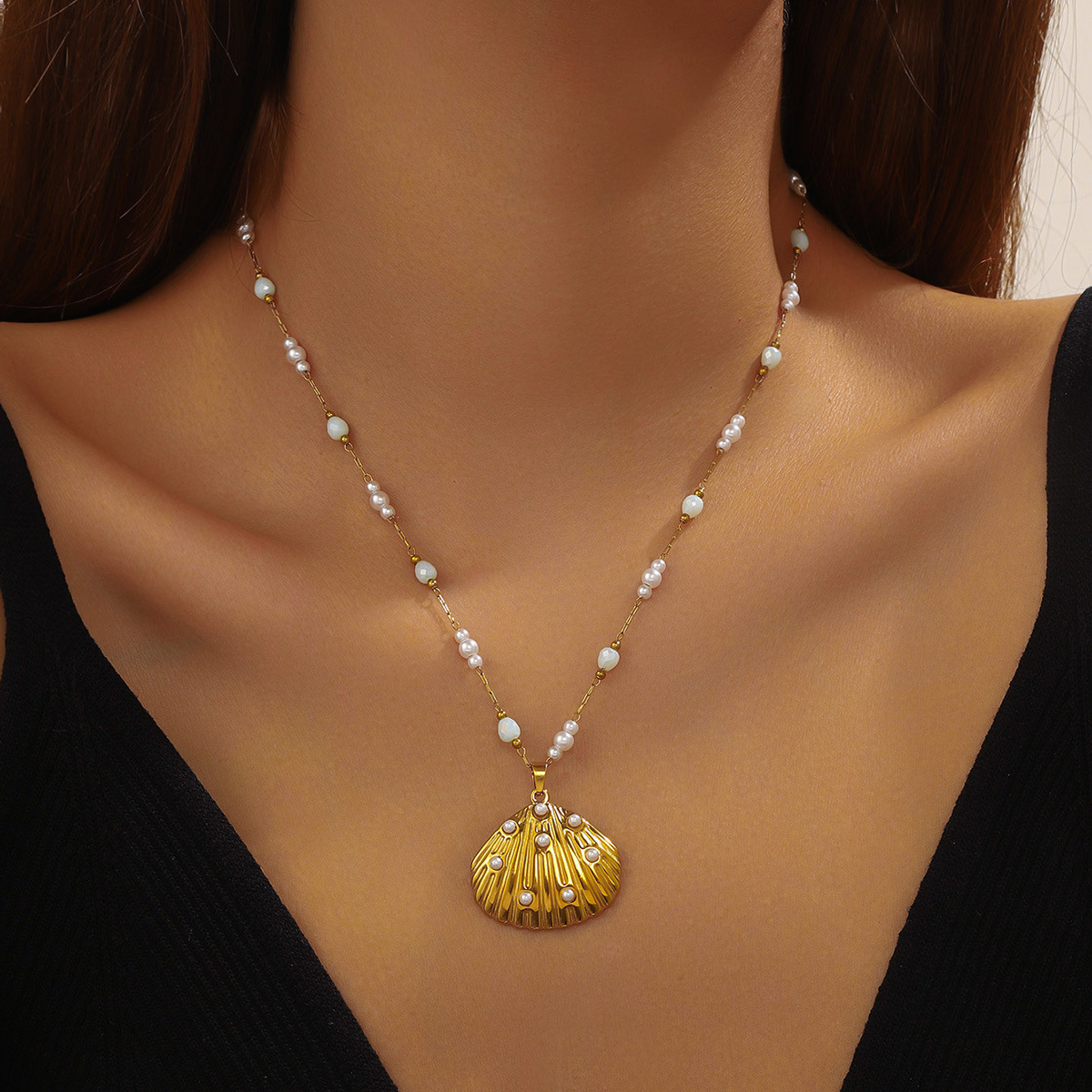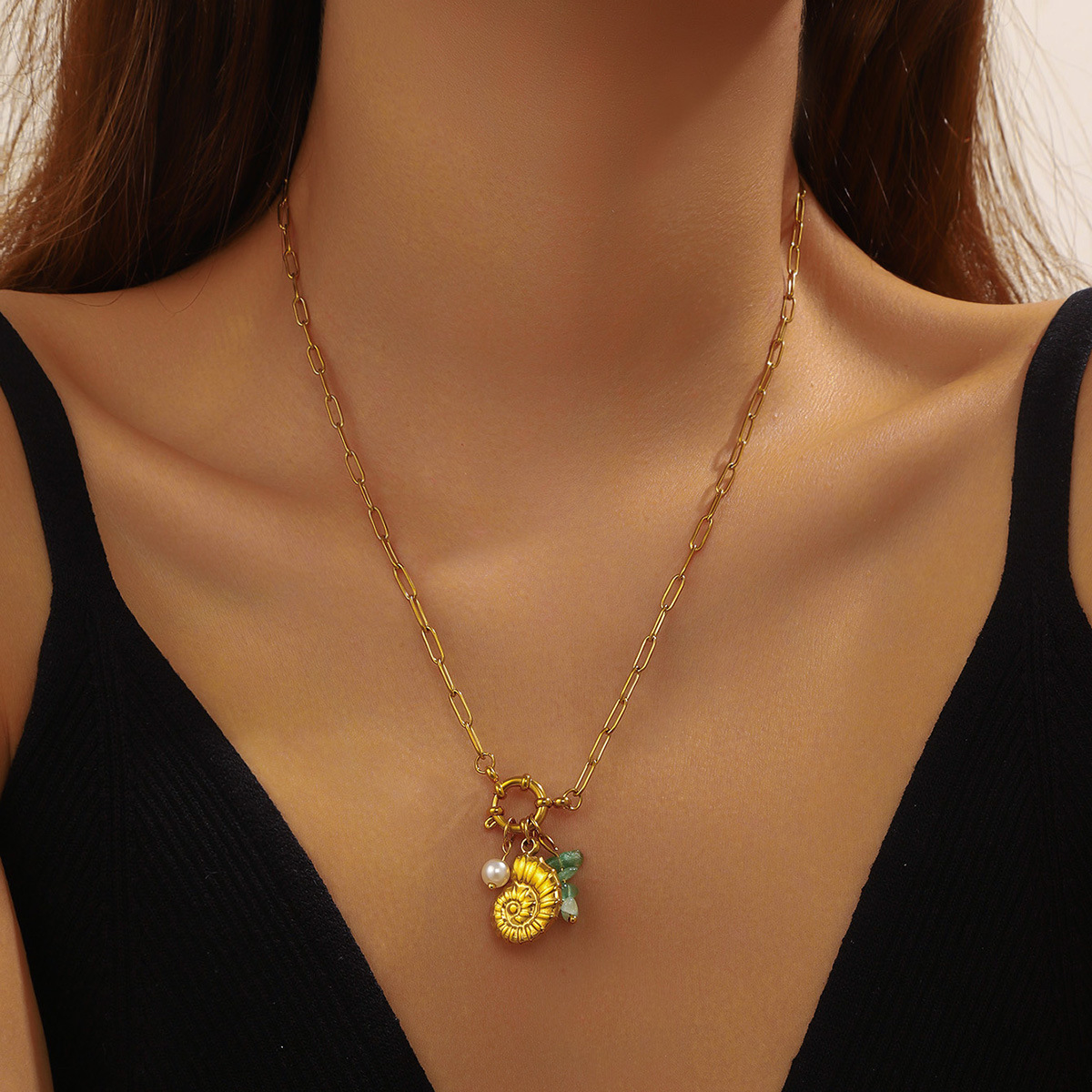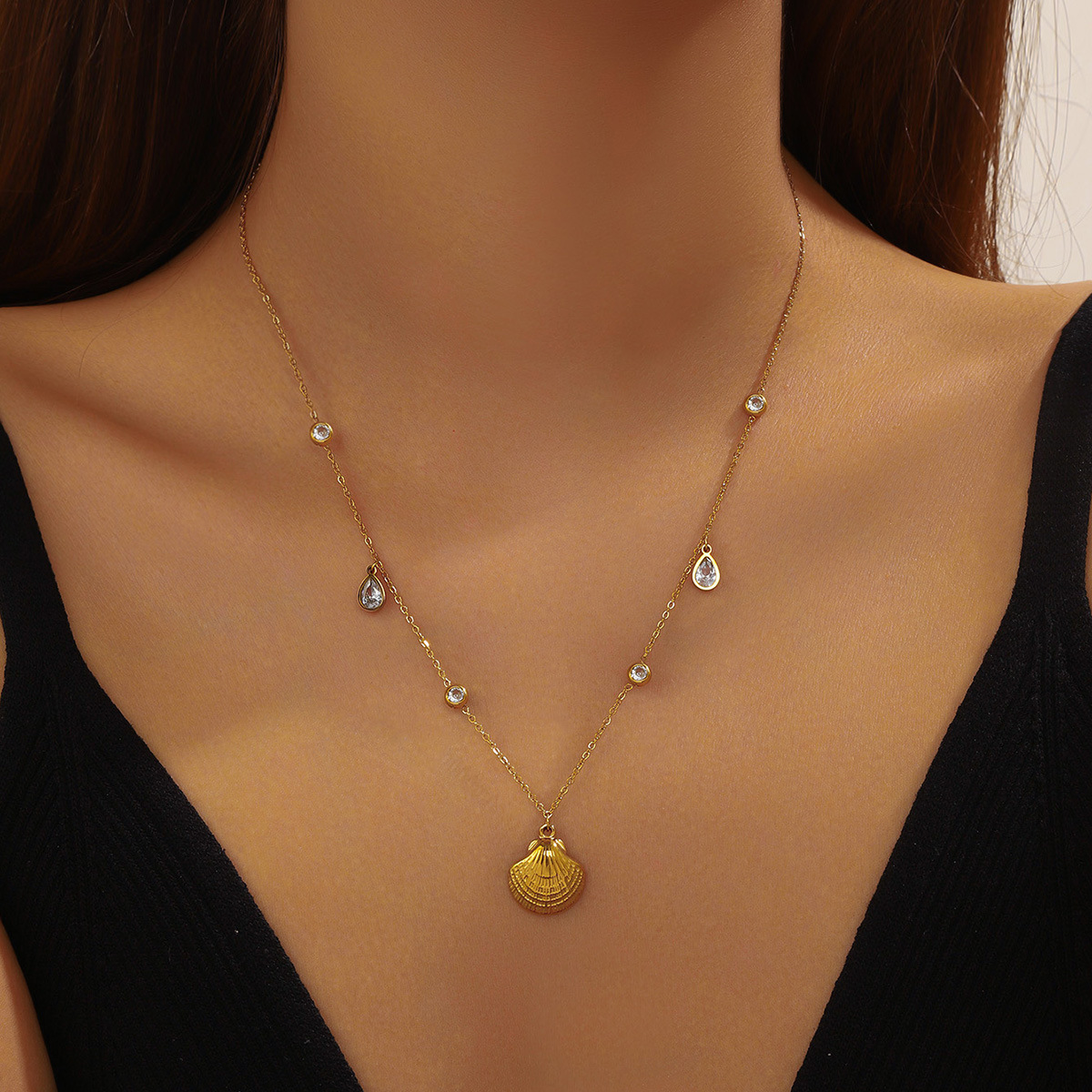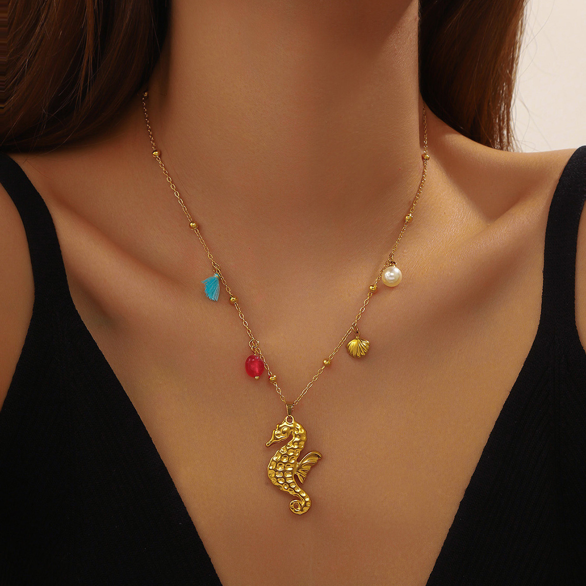 Fashion ocean series accessories pendant gold-plated stainless steel starfish shell multi-element dripping butterfly necklace