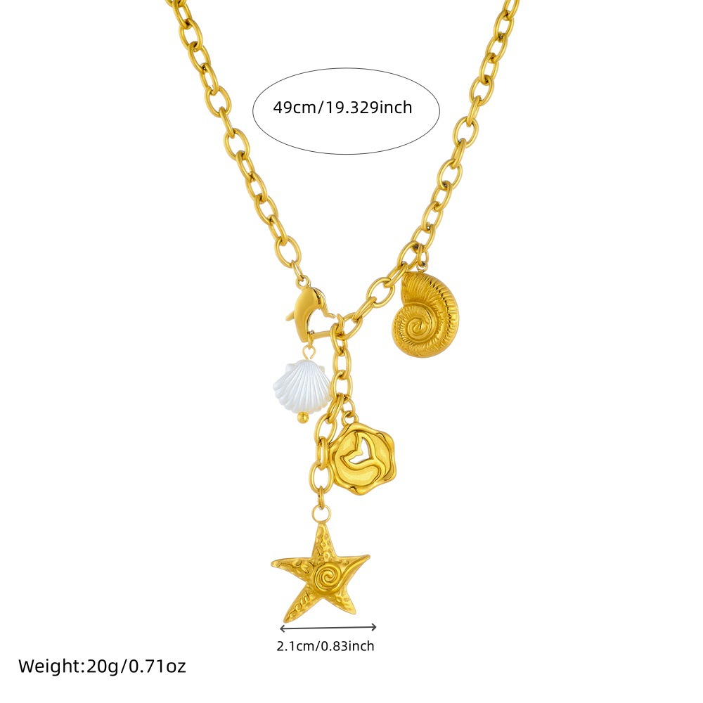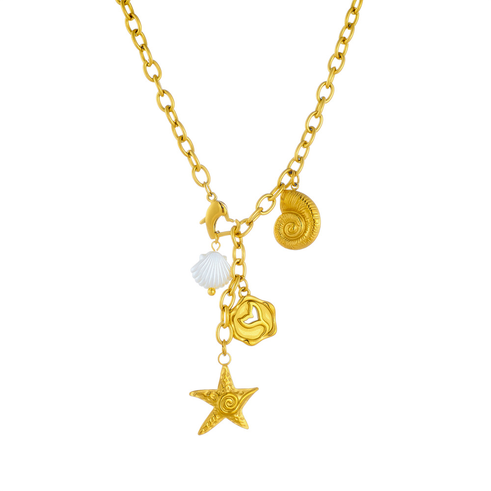 Home > New Arrival > Fashion ocean style pendant starfish tail seashell gold-plated stainless steel chain jewelry necklace
