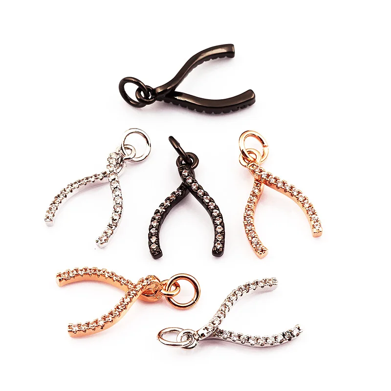 Home > Pendants and charms > Fashion Ox Horn Half Month Wishing Bone Wings Zircon Charm Pendant,18K Gold Plated Necklace Jewelry Findings Supply L61