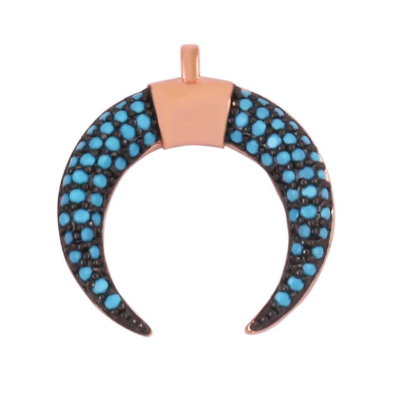 Fashion Ox Horn Half Month Wishing Bone Wings Zircon Charm Pendant,18K Gold Plated Necklace Jewelry Findings Supply L61