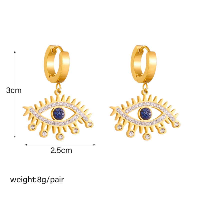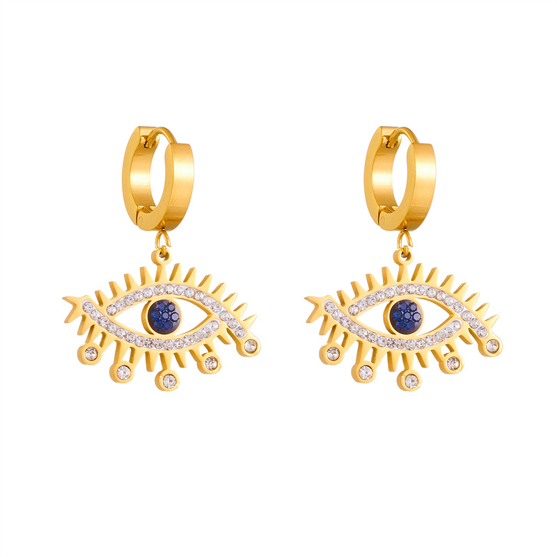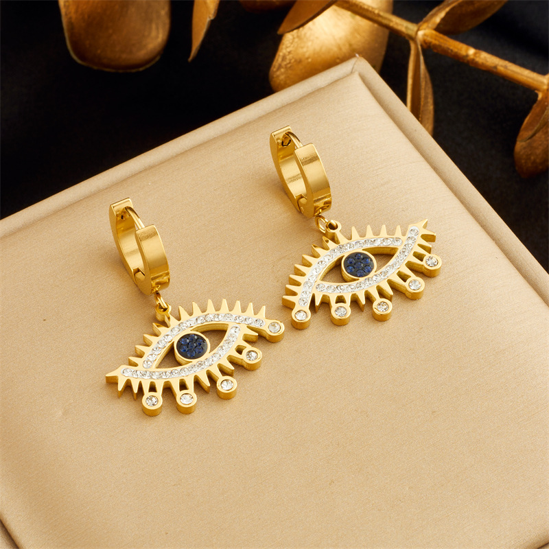Fashion personalized blue diamond-encrusted gold-plated openwork stainless steel eye accessories jewelry earrings