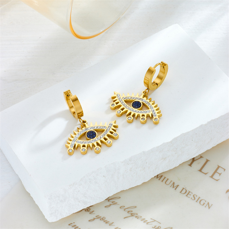 Home > New Arrival > Fashion personalized blue diamond-encrusted gold-plated openwork stainless steel eye accessories jewelry earrings