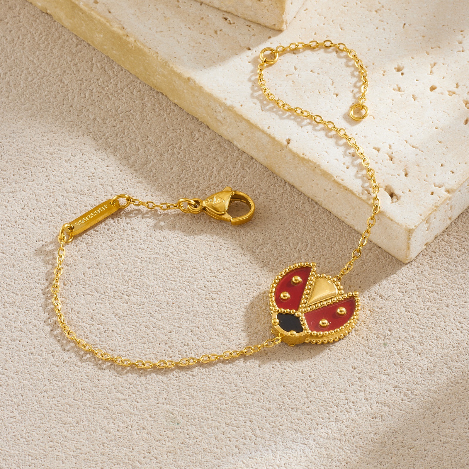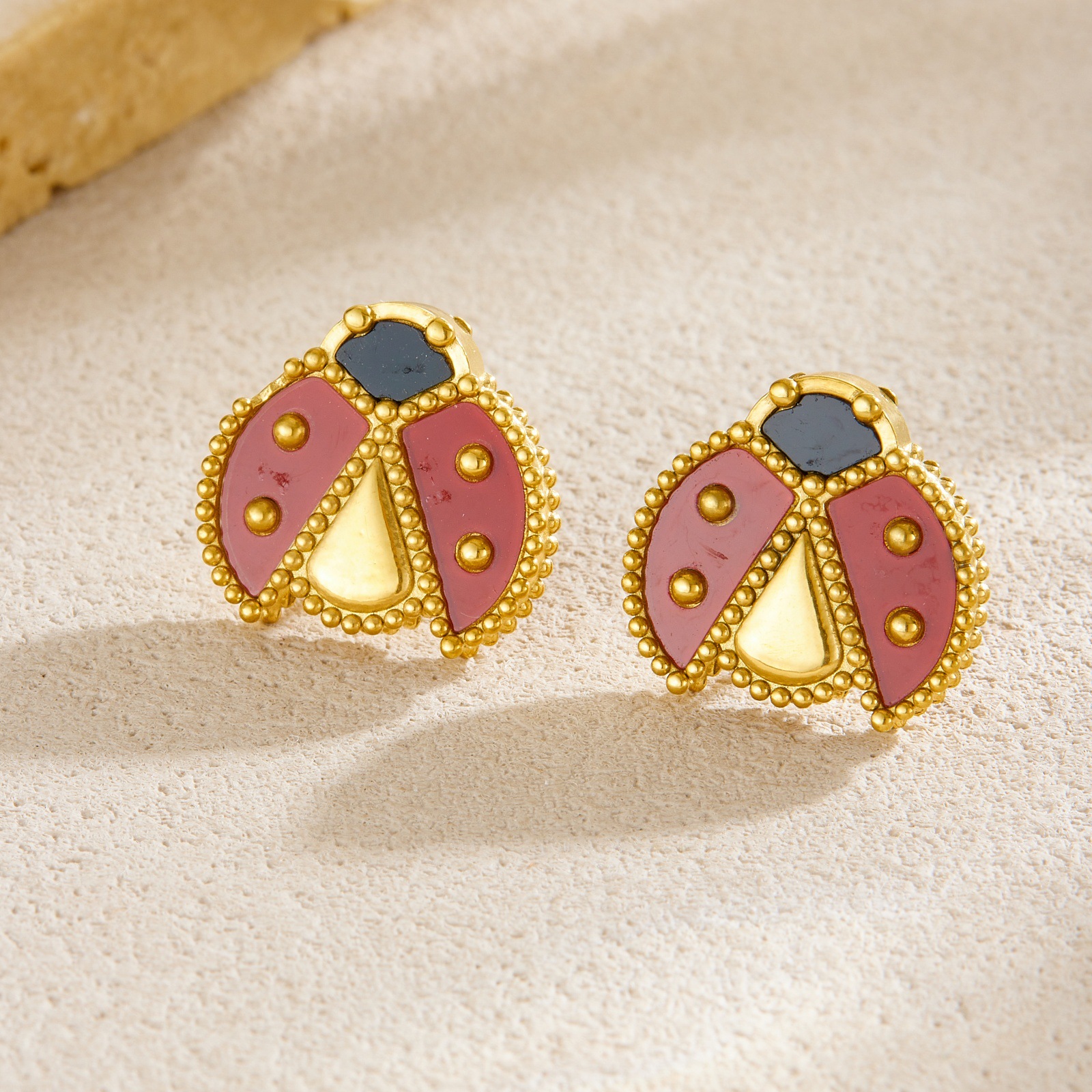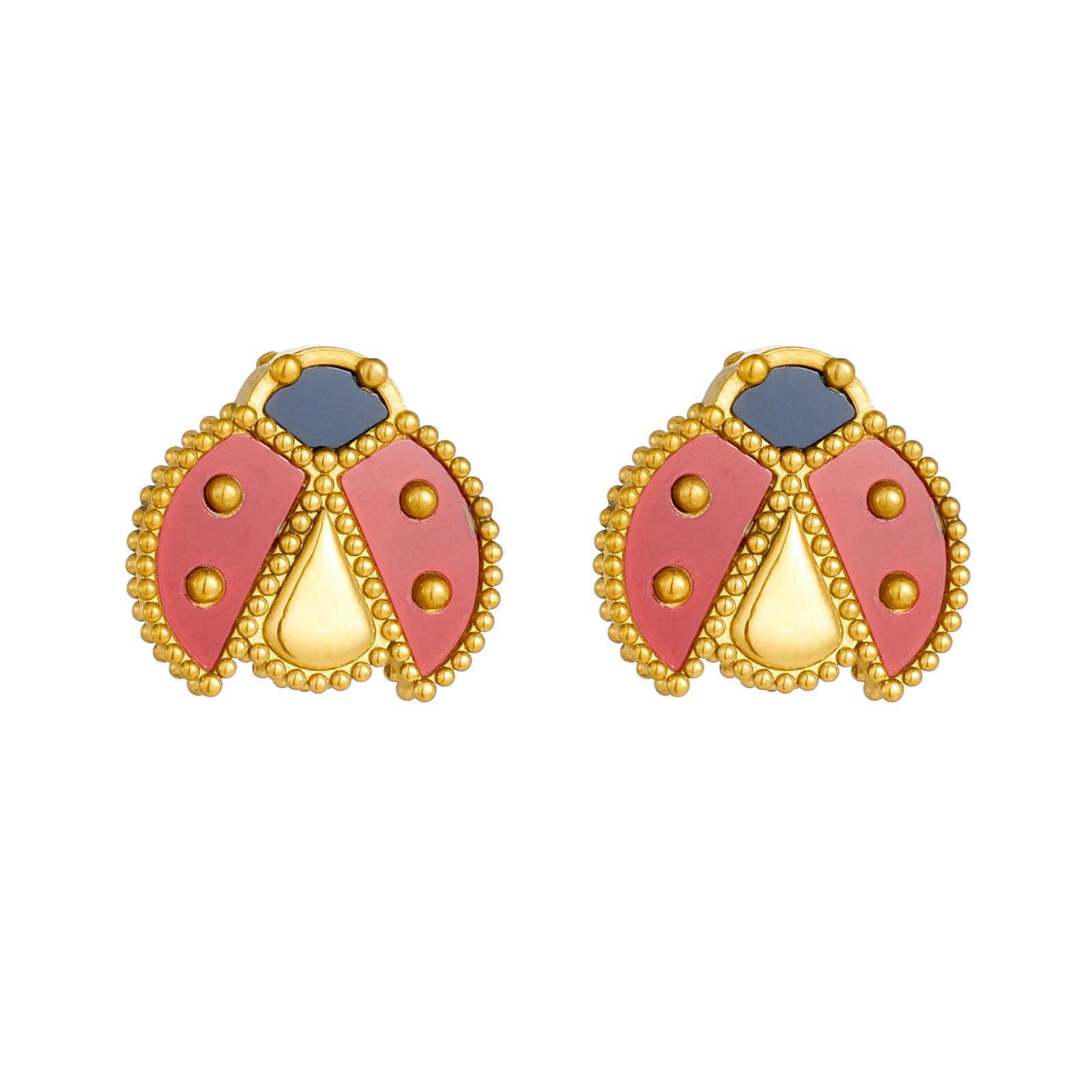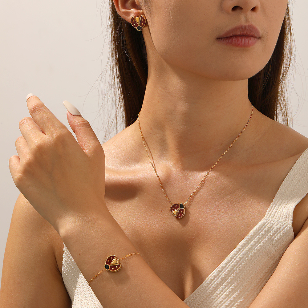 Home > New Arrival > Fashion personalized cartoon realistic ladybug dripping stainless steel gold-plated pendant accessory versatile women's set