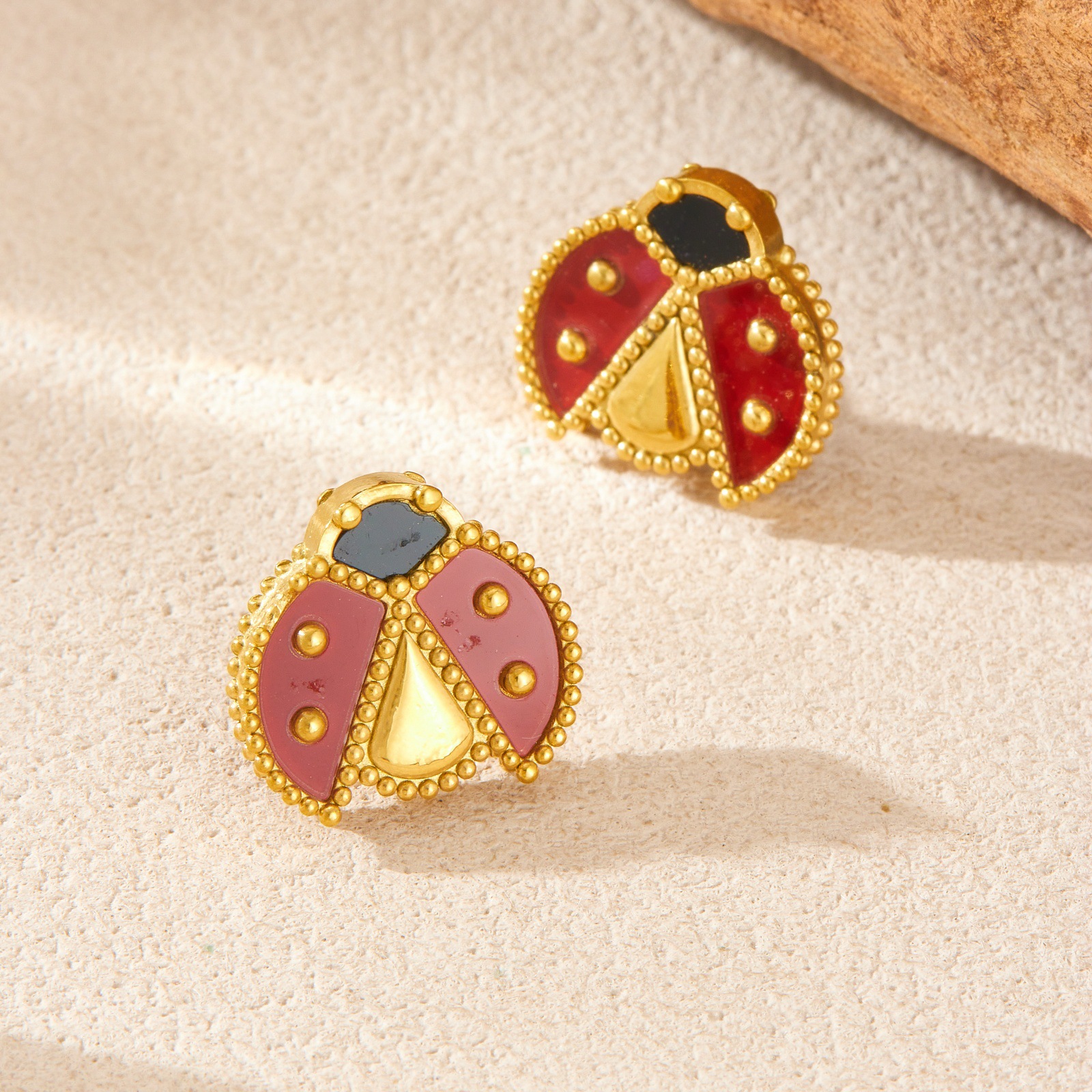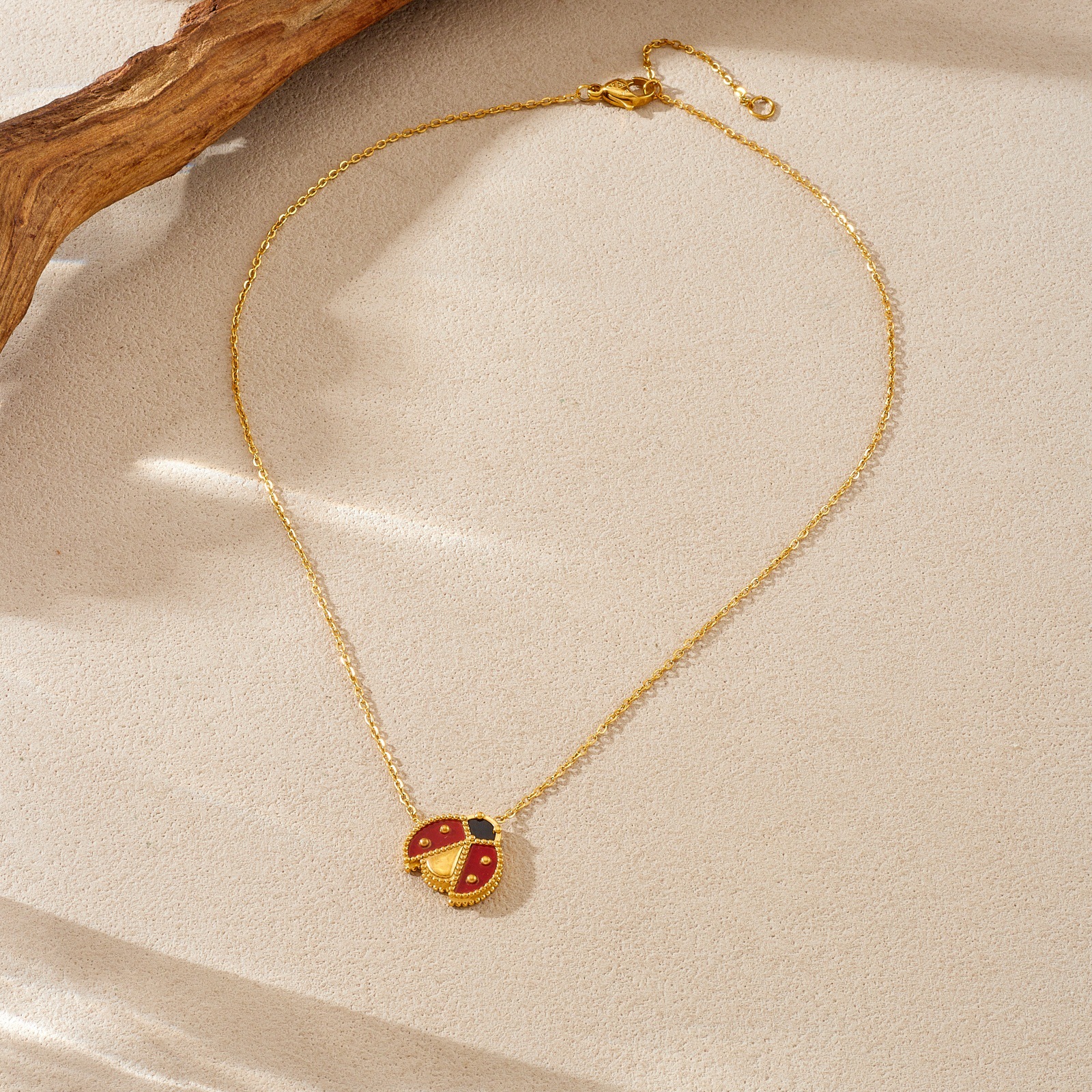 Fashion personalized cartoon realistic ladybug dripping stainless steel gold-plated pendant accessory versatile women's set