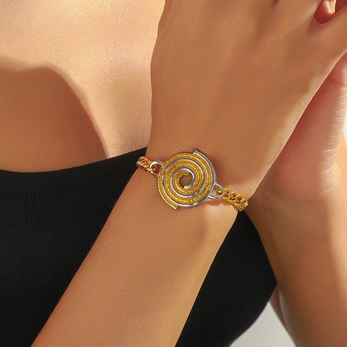 Home > New Arrival > Fashion personalized color-blocked circle threaded connection accessories chain stainless steel heavy-duty jewelry set