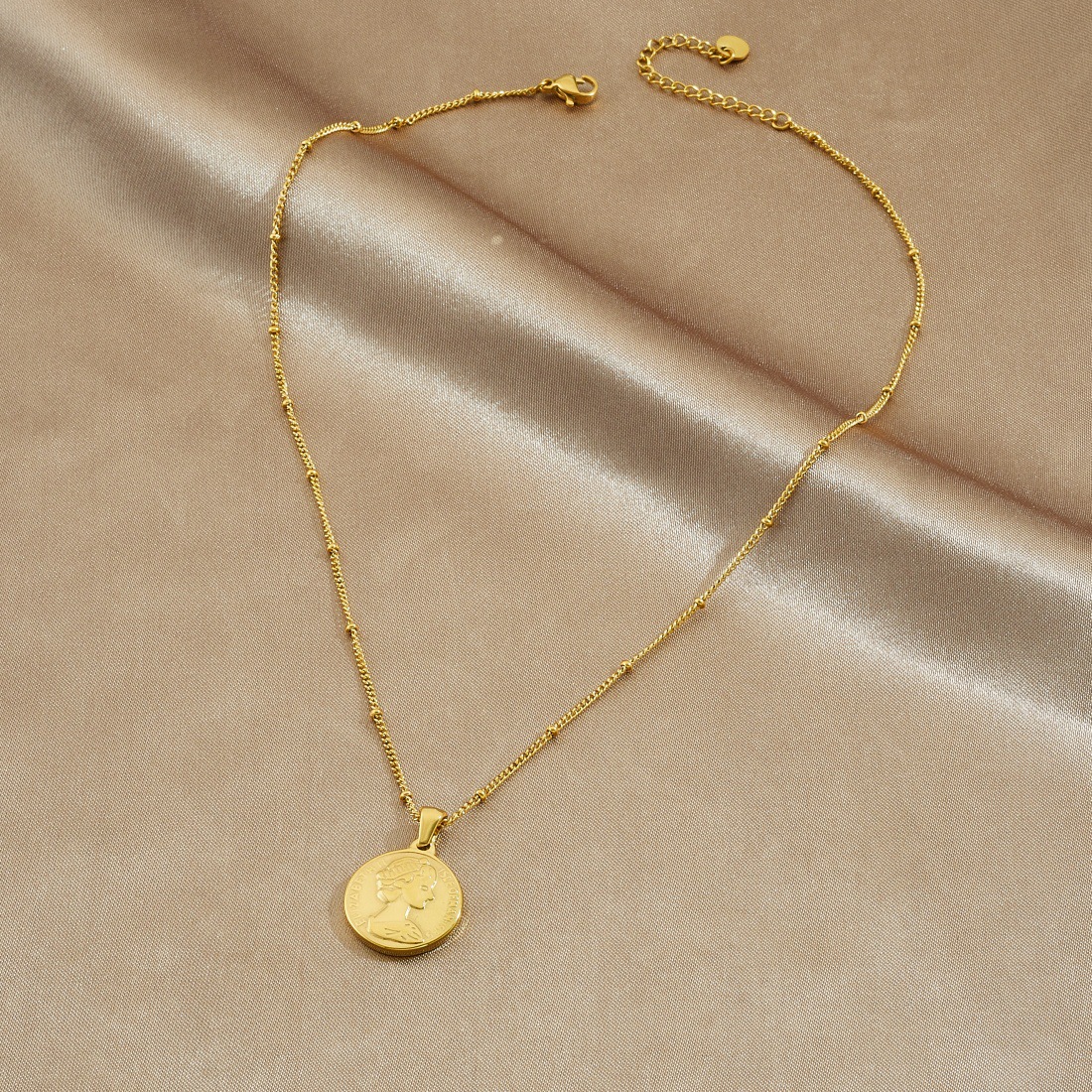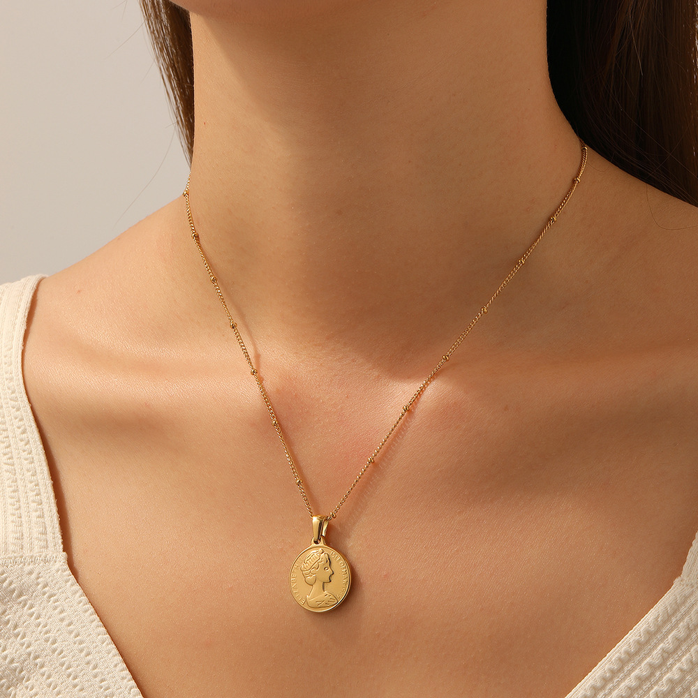 Home > New Arrival > Fashion retro gold-plated round relief portrait head pendant stainless steel jewelry clavicle necklace