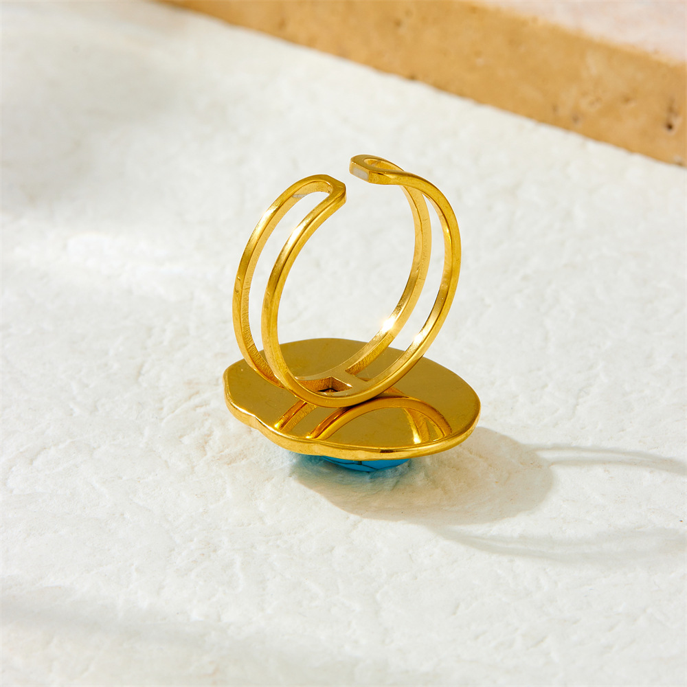Fashion retro high-end open adjustable line oval set with turquoise accessories stainless steel ring