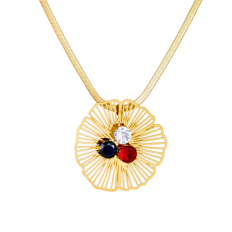 Fashion retro hollowed-out gold-plated diamond-encrusted flower pendant accessories stainless steel necklace