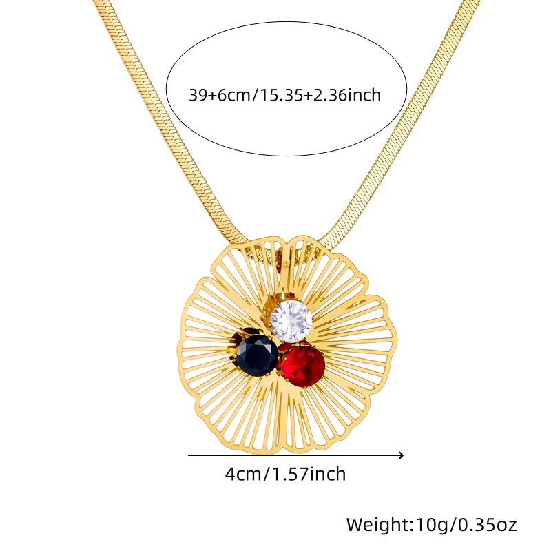 Home > New Arrival > Fashion retro hollowed-out gold-plated diamond-encrusted flower pendant accessories stainless steel necklace