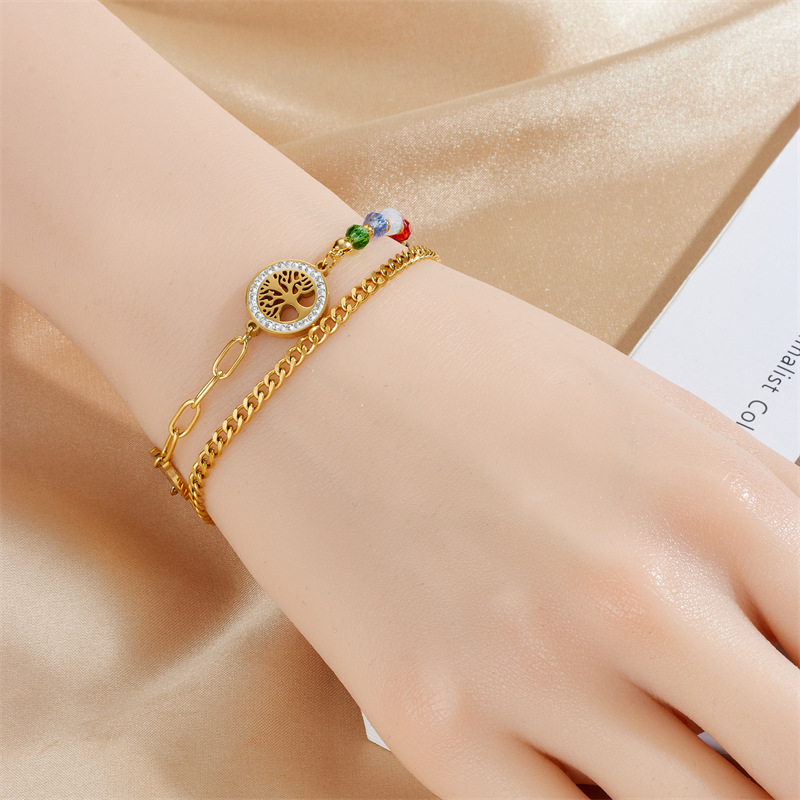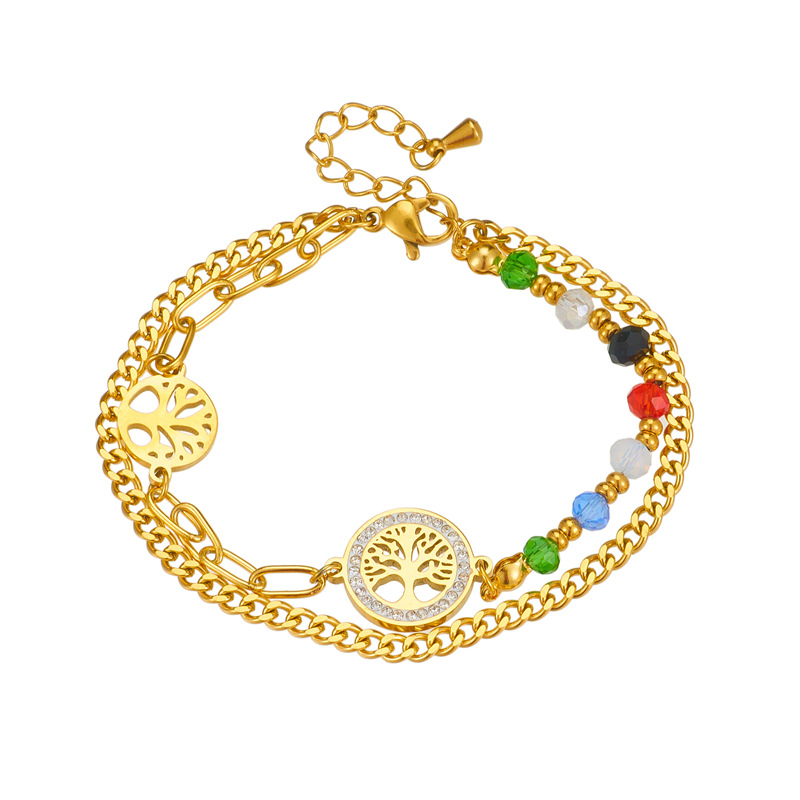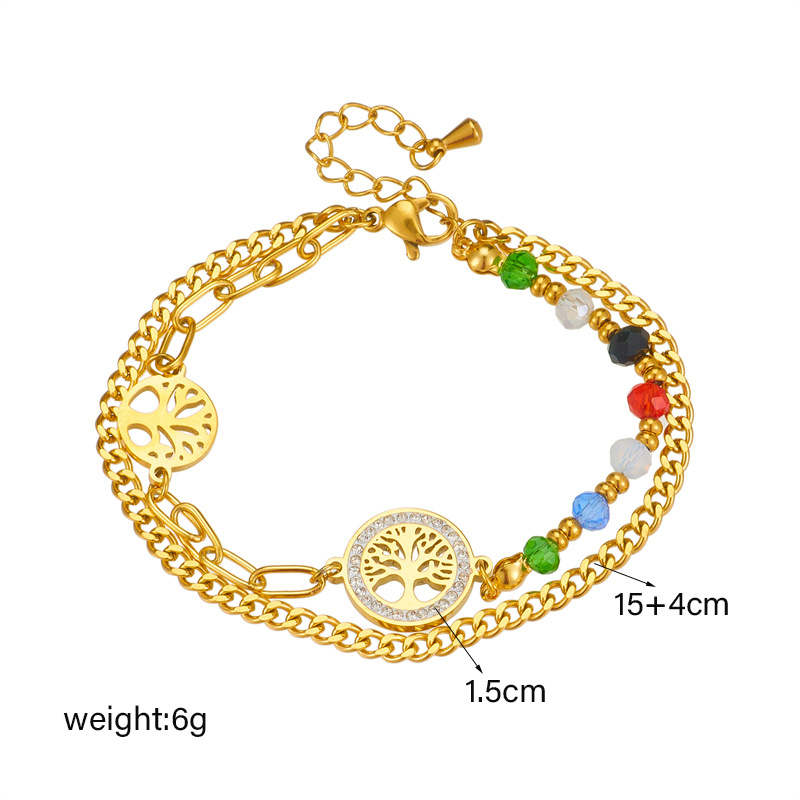 Fashion retro irregular chain round tree of life connected colorful bead double-layer bracelet