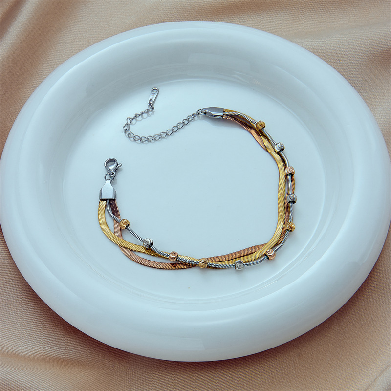 Fashion retro multi-layered titanium steel color-blocked chain punk heavy-duty hip-hop accessory bracelet