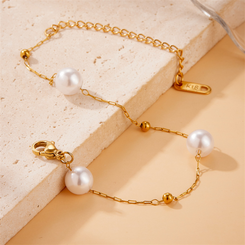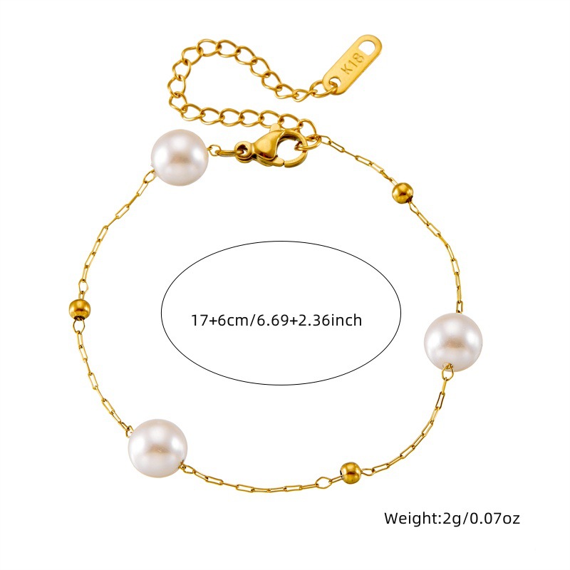 Home > New Arrival > Fashion retro versatile geometric round pearl gold-plated chain accessories stainless steel bracelet and necklace set