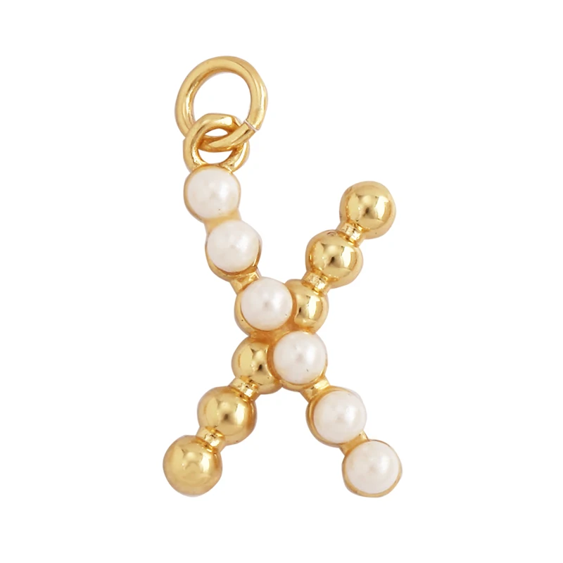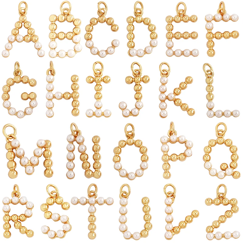 Home > Pendants and charms > Fashion Simple Imitation Pearl 18K Gold Initial Name Letter Charm Pendant,Without Zircon Necklace Jewelry Findings Supplies L01