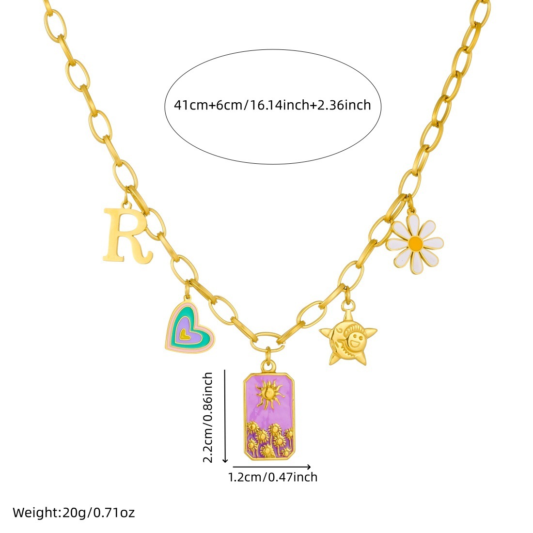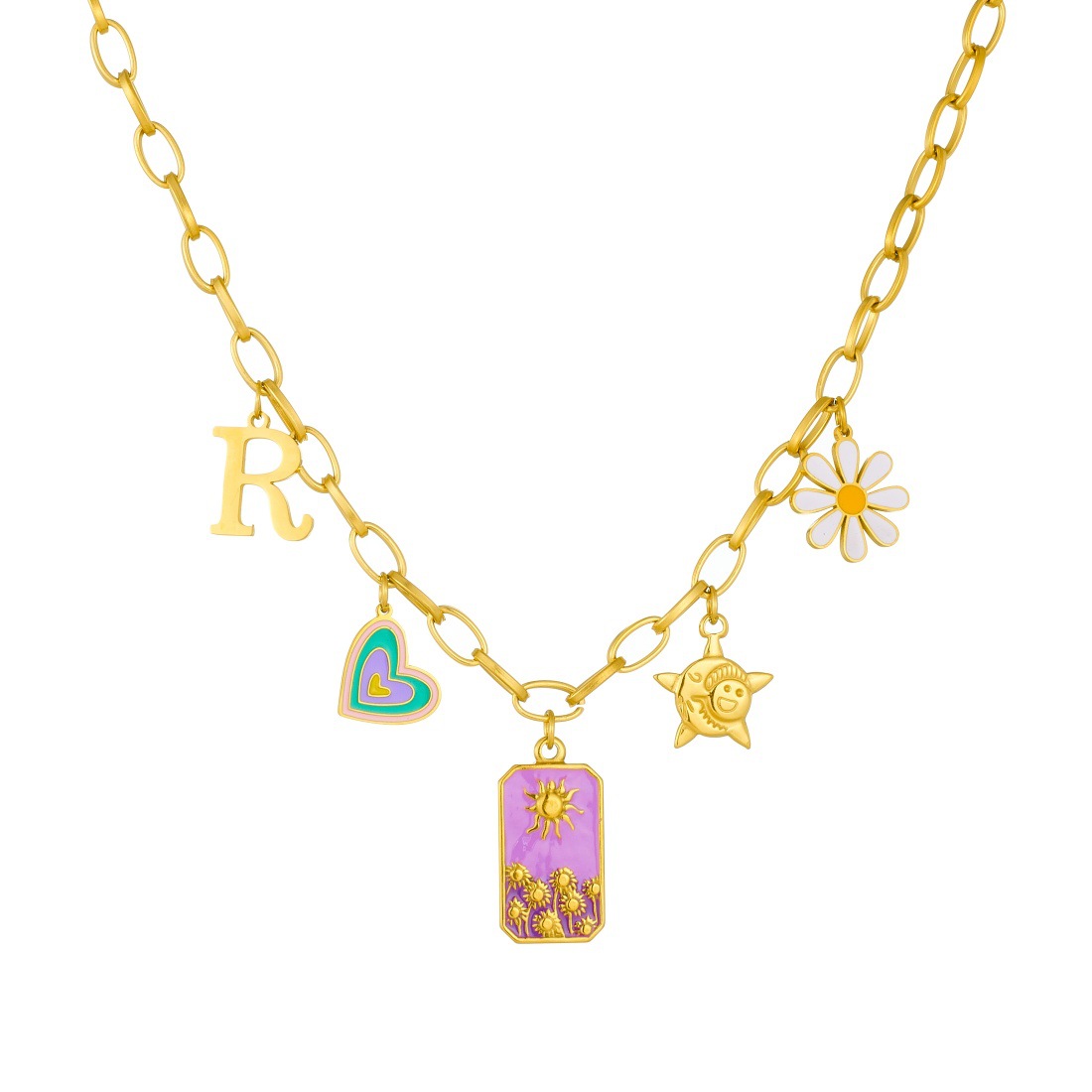 Home > New Arrival > Fashion trendy drip-colored heart square sun daisy flower pendant stainless steel necklace