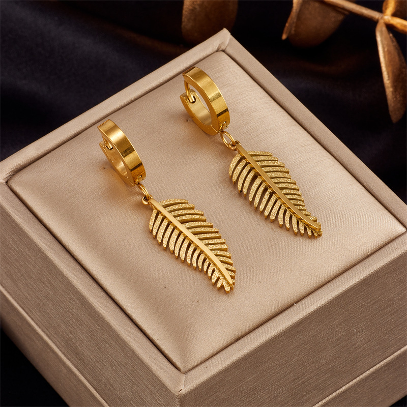 Home > New Arrival > Fashionable, commuter-friendly, minimalist, niche design, titanium steel metal feather pendant jewelry, versatile, cool style earrings