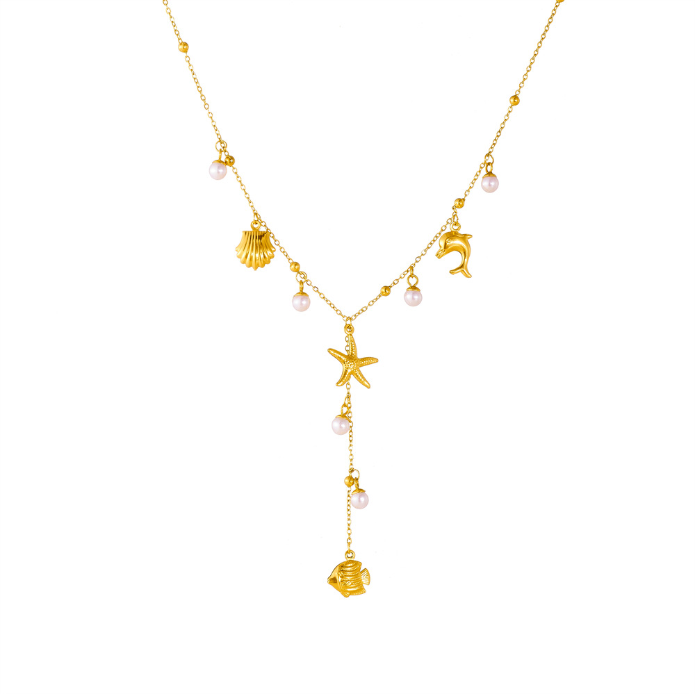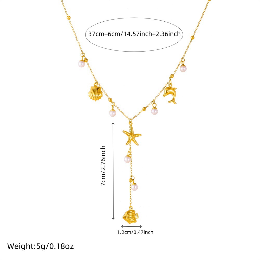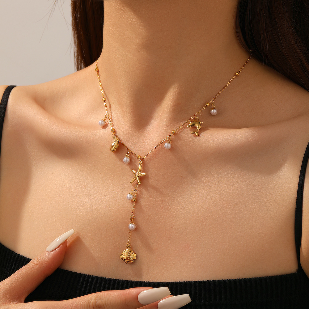 Home > New Arrival > Fashionable, minimalist design, beach vacation style, multi-element accessory, Y-shaped chain, stainless steel butterfly and starfish necklace.