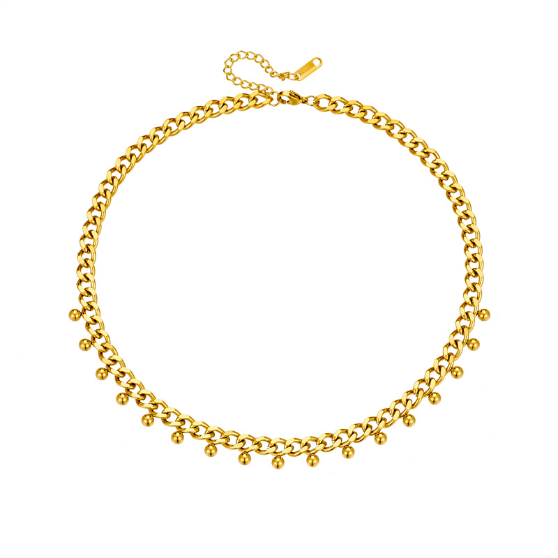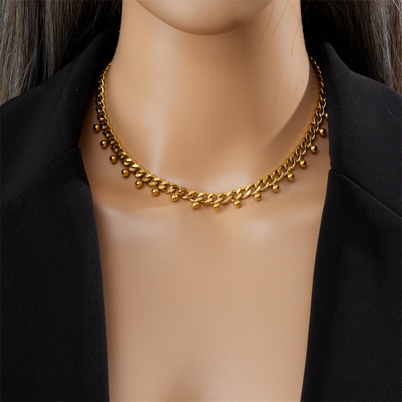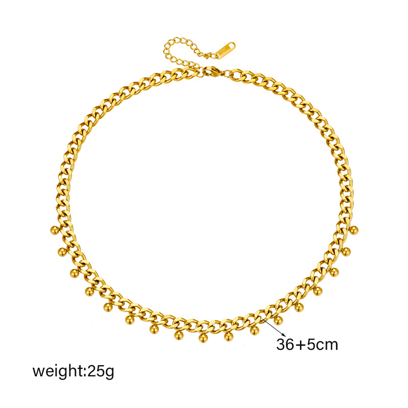 Home > New Arrival > Fashionable, niche, minimalist design, metal titanium steel chunky chain, gold bead pendant jewelry, clavicle chain necklace.