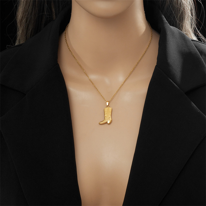 Fashionable, niche, unique, creative gold-plated titanium steel carved boot pendant chain jewelry necklace