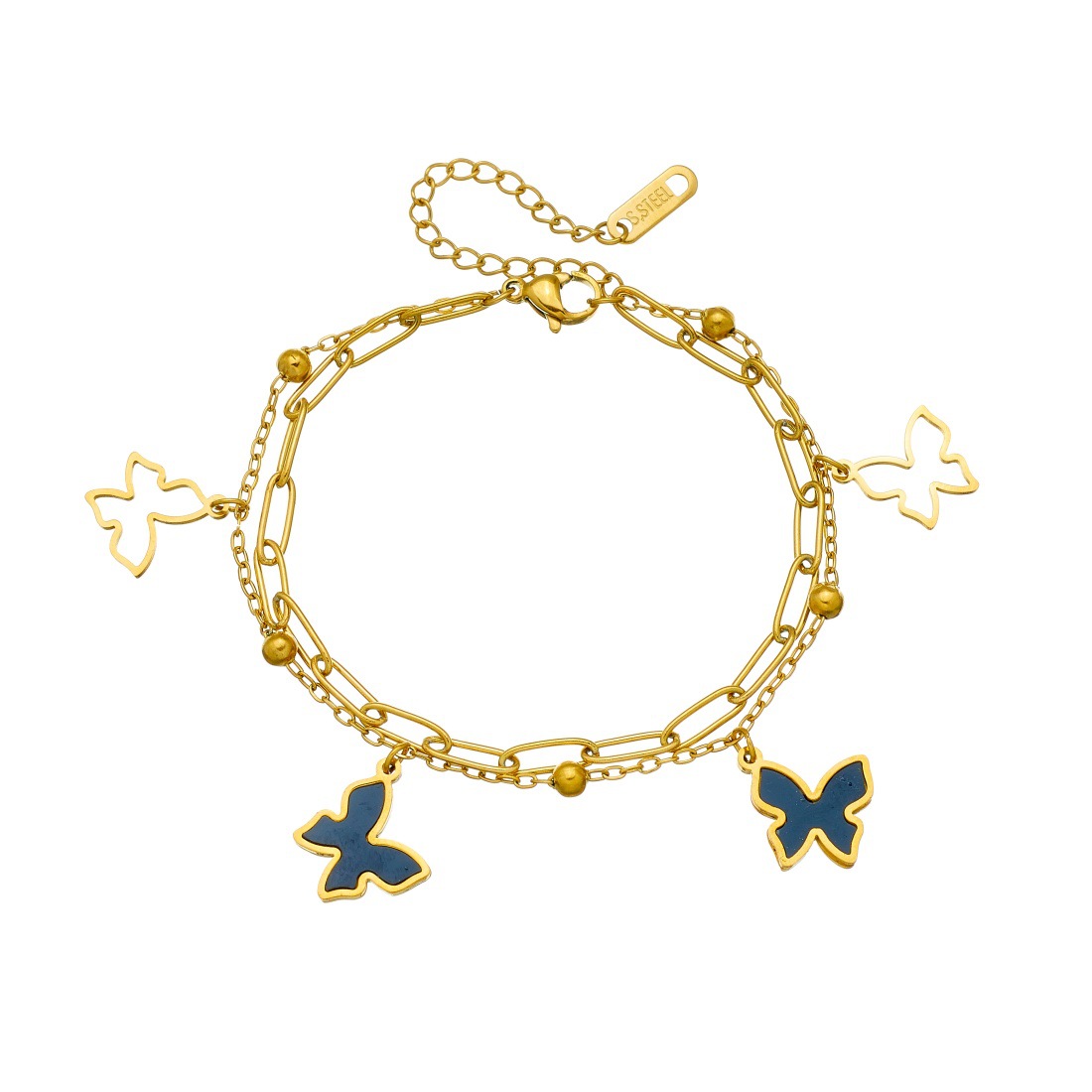 Home > New Arrival > Fashionable, simple, versatile, double-layered, gold-plated black hollow butterfly pendant stainless steel jewelry bracelet