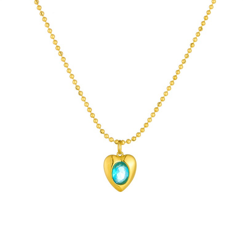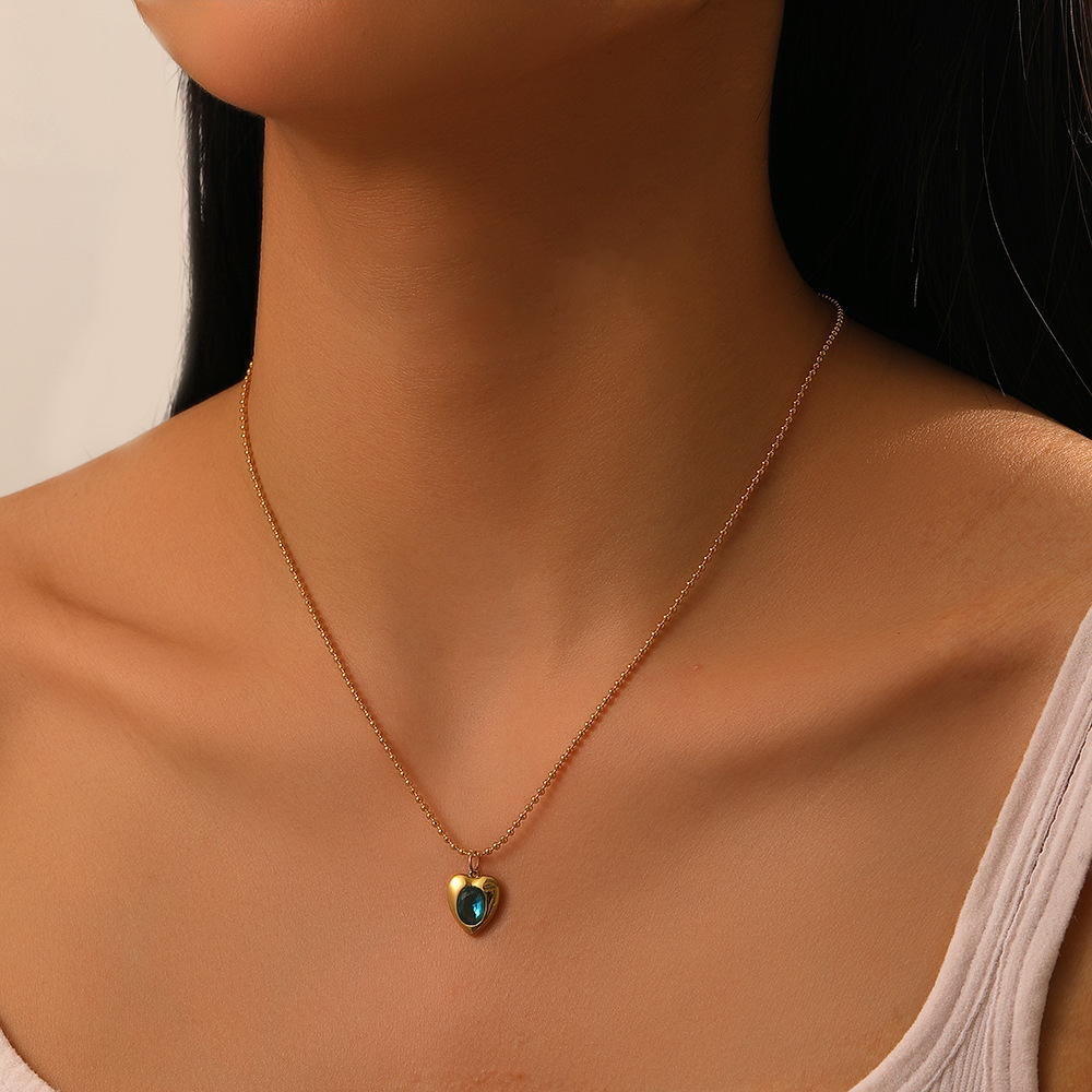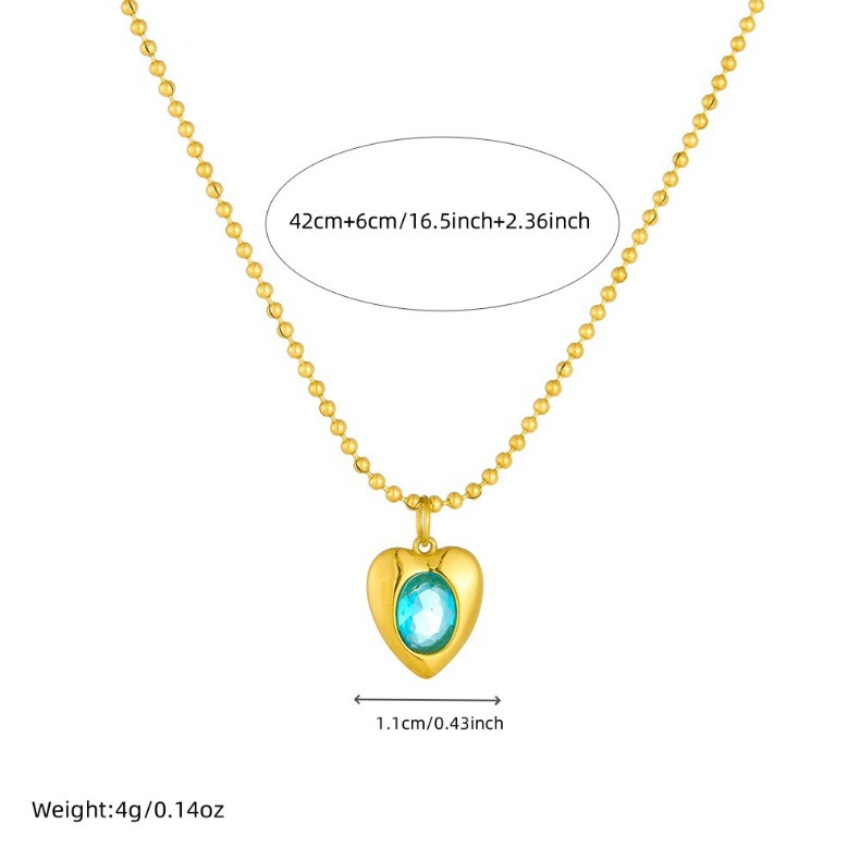 Home > New Arrival > Fashionable, simple, versatile oval geometric rhinestone glass heart stainless steel bead chain clavicle necklace