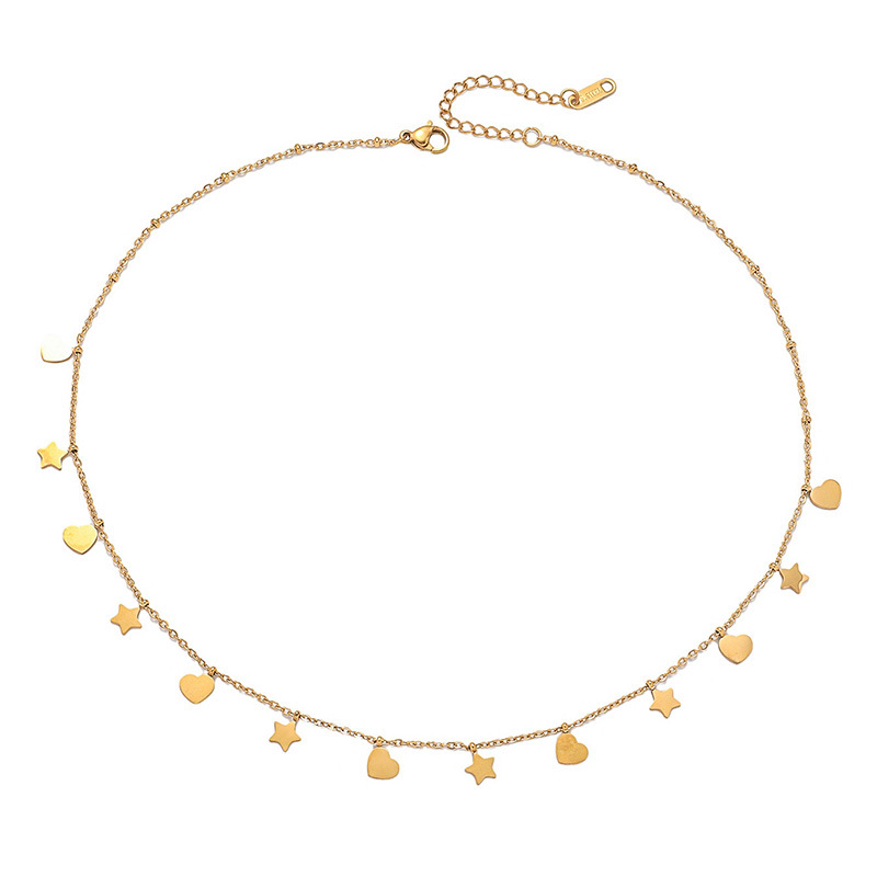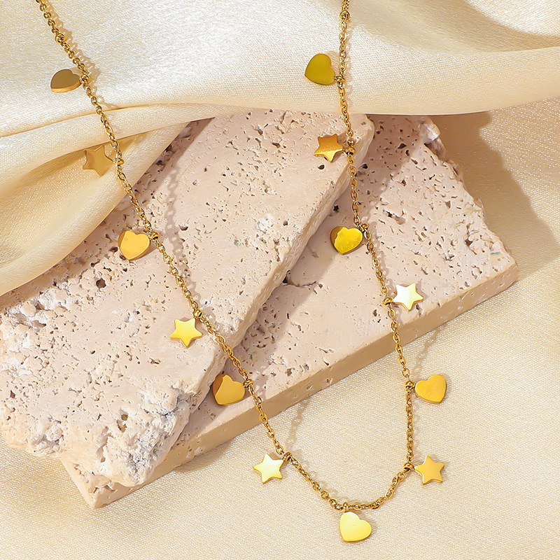 Home > New Arrival > Fashionable, simple, versatile stainless steel polished heart and star accessory chain pendant necklace for commuting and everyday wear.