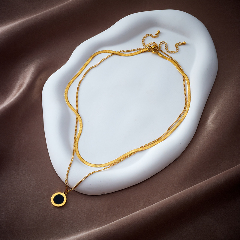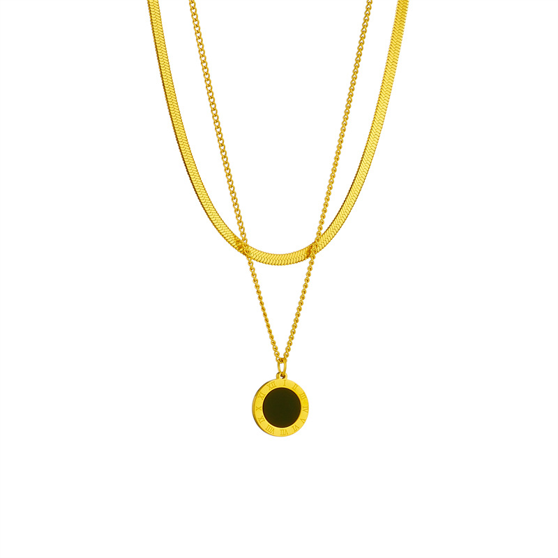 Home > New Arrival > Fashionable, simple and retro black Roman round pendant, titanium steel metal jewelry, snake bone chain necklace