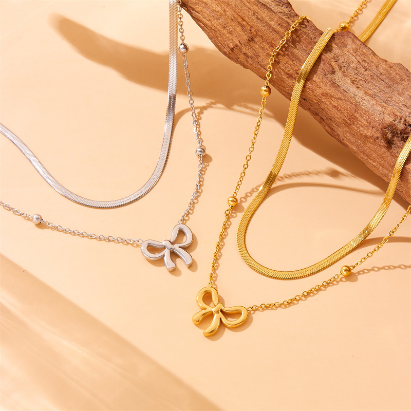 Home > New Arrival > Fashionable,elegant, retro, high-end metal stainless steel bow starfish chain double-layer jewelry necklace