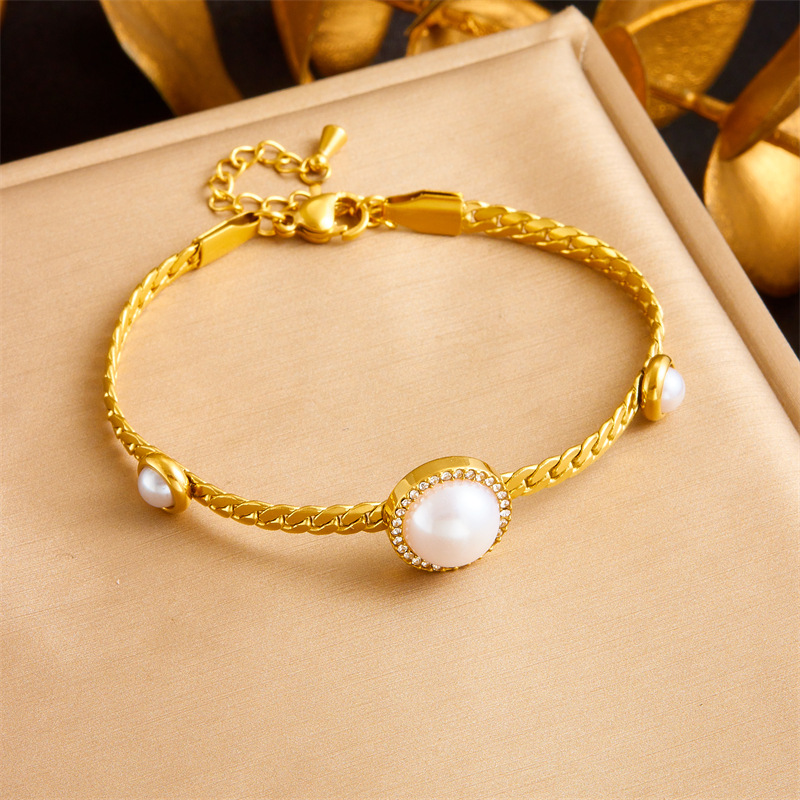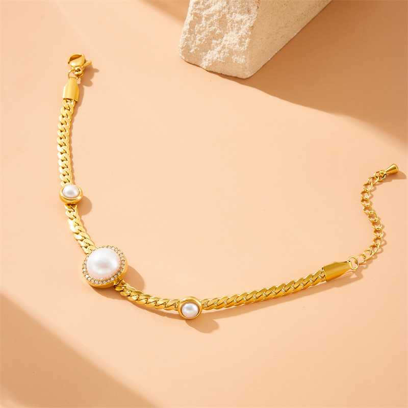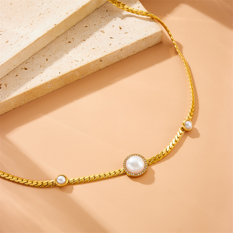 Home > New Arrival > Fashionable and luxurious round pearl and diamond necklace, elegant choker, stainless steel bracelet, cross-border wholesale set