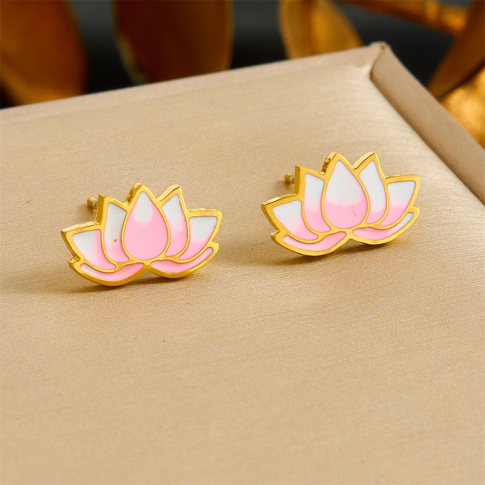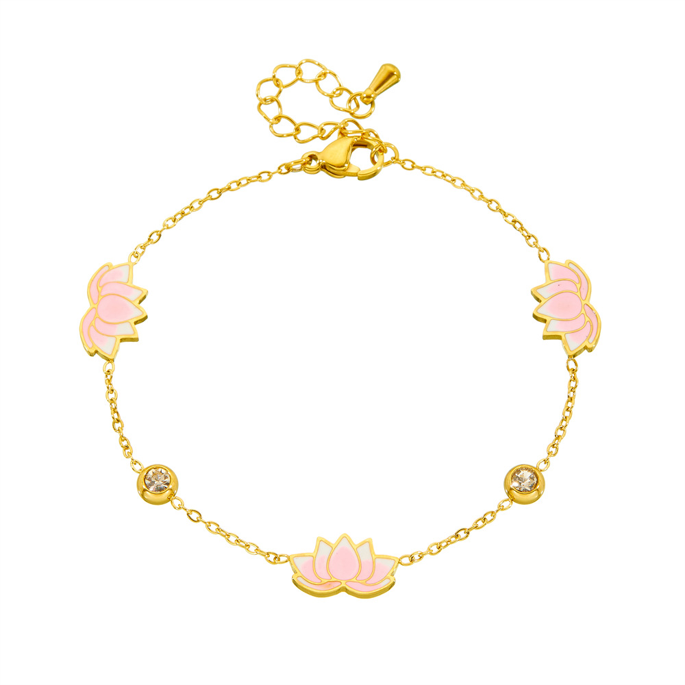 Home > New Arrival > Fashionable and minimalist new Chinese style epoxy resin pink gradient lotus flower rhinestone-encrusted delicate chain necklace, earrings, and bracelet set