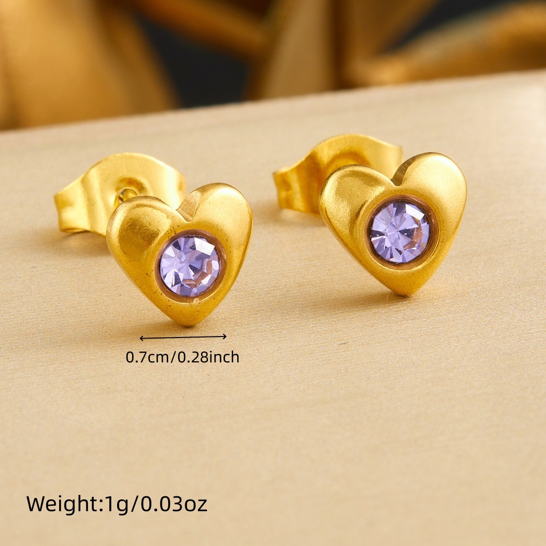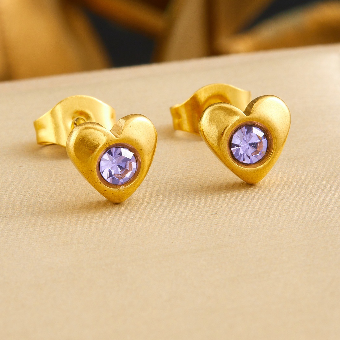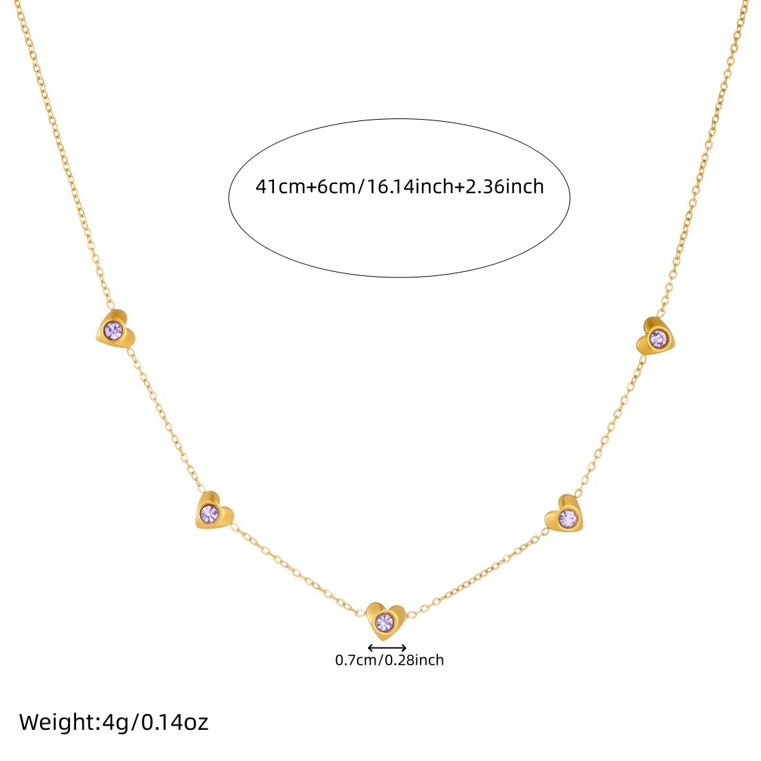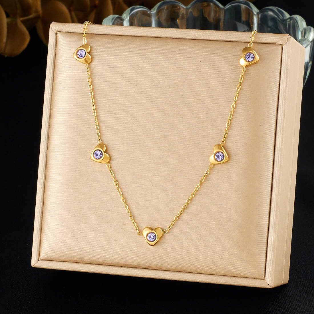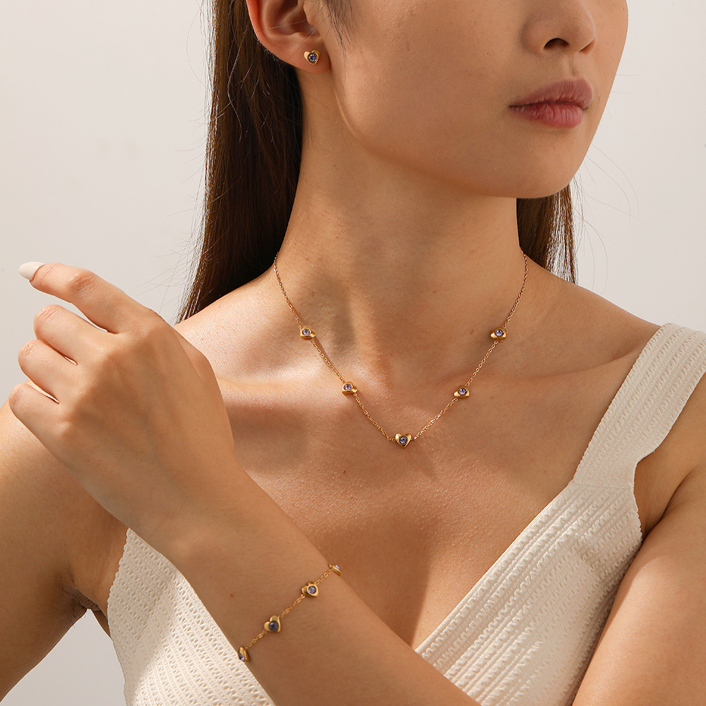 Home > New Arrival > Fashionable and simple exquisite purple diamond-encrusted gold-plated heart-shaped accessory pendant jewelry three-piece set in stainless steel