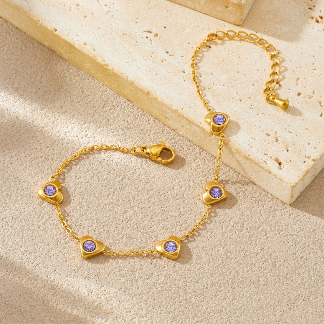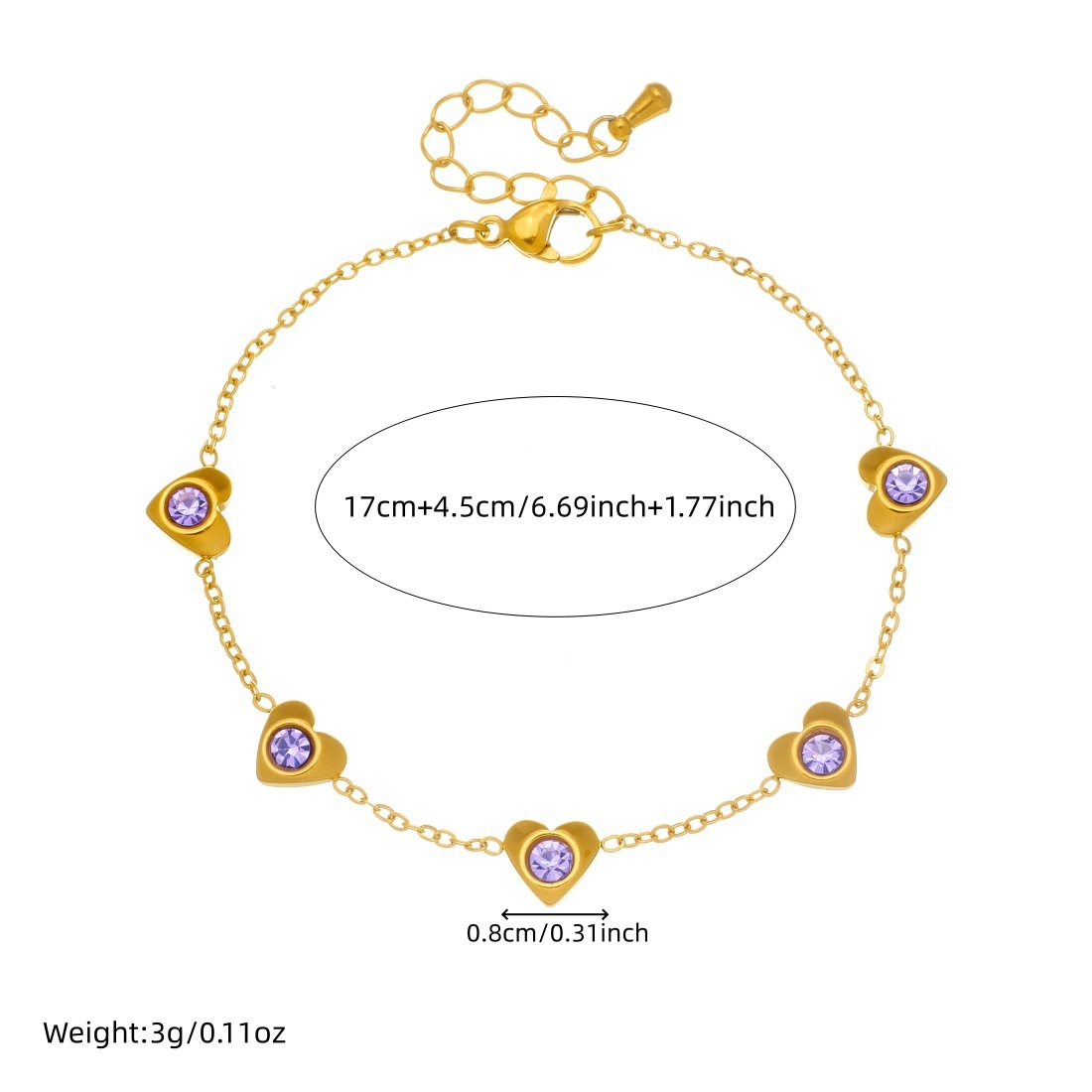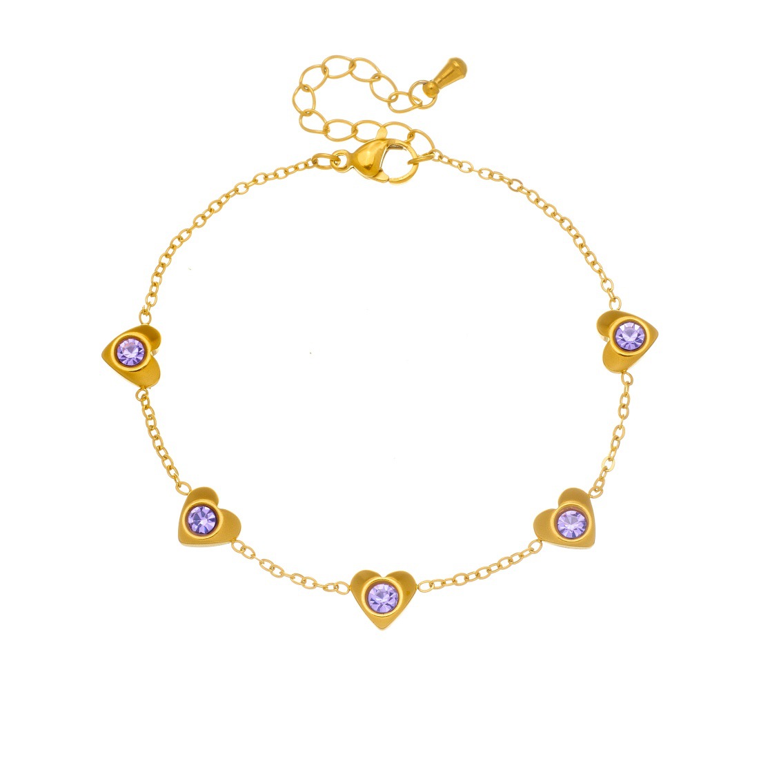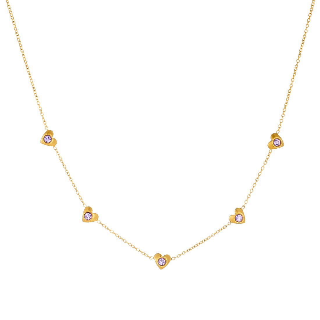 Home > New Arrival > Fashionable and simple exquisite purple diamond-encrusted gold-plated heart-shaped accessory pendant jewelry three-piece set in stainless steel