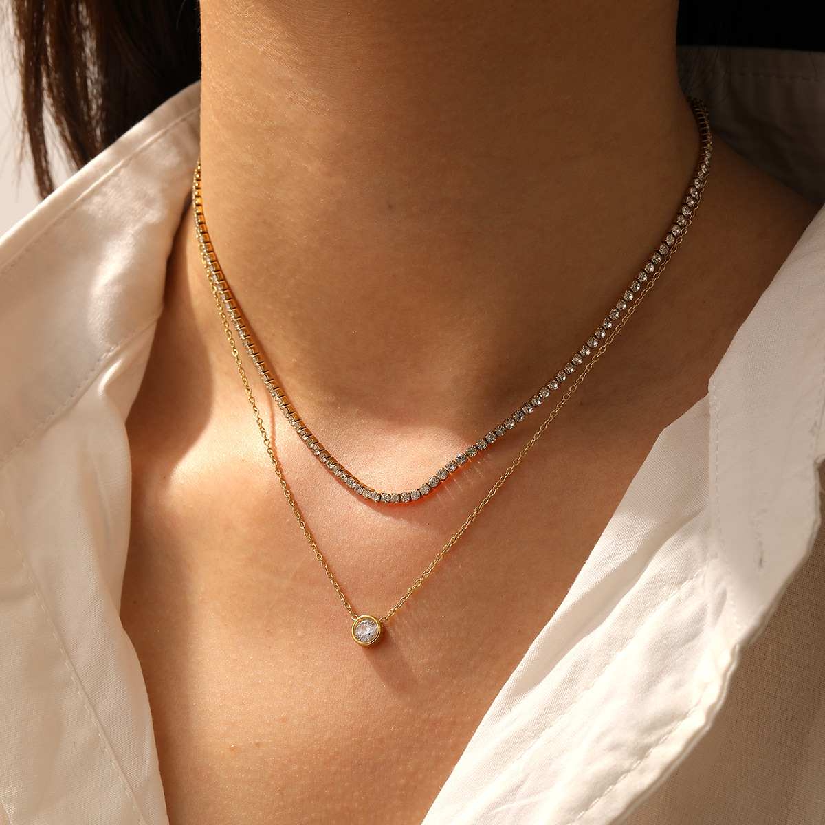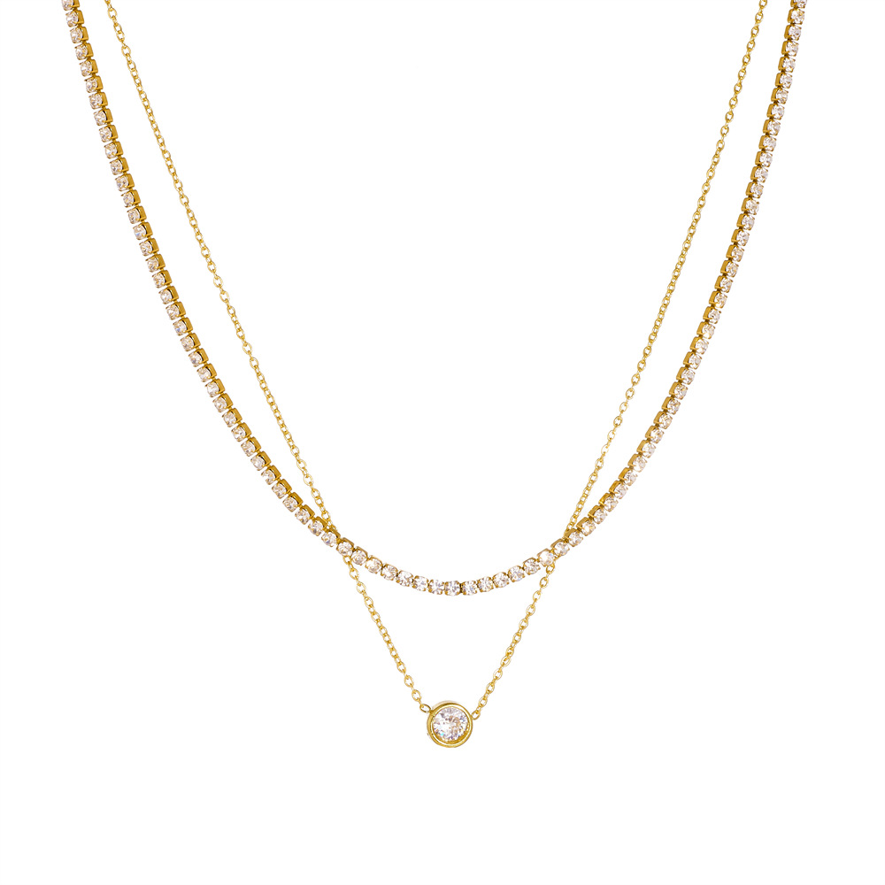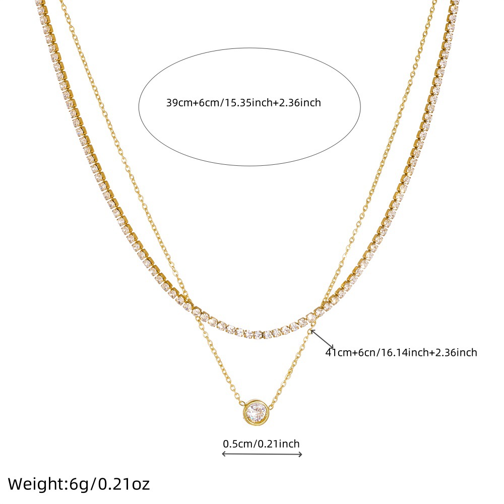 Home > New Arrival > Fashionable and simple round heart-shaped pendant accessory double-layer stainless steel full diamond necklace