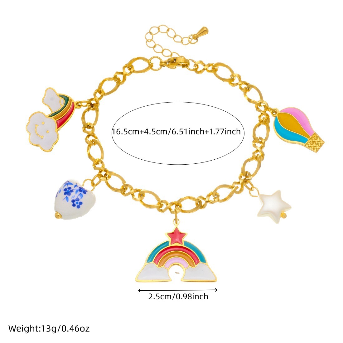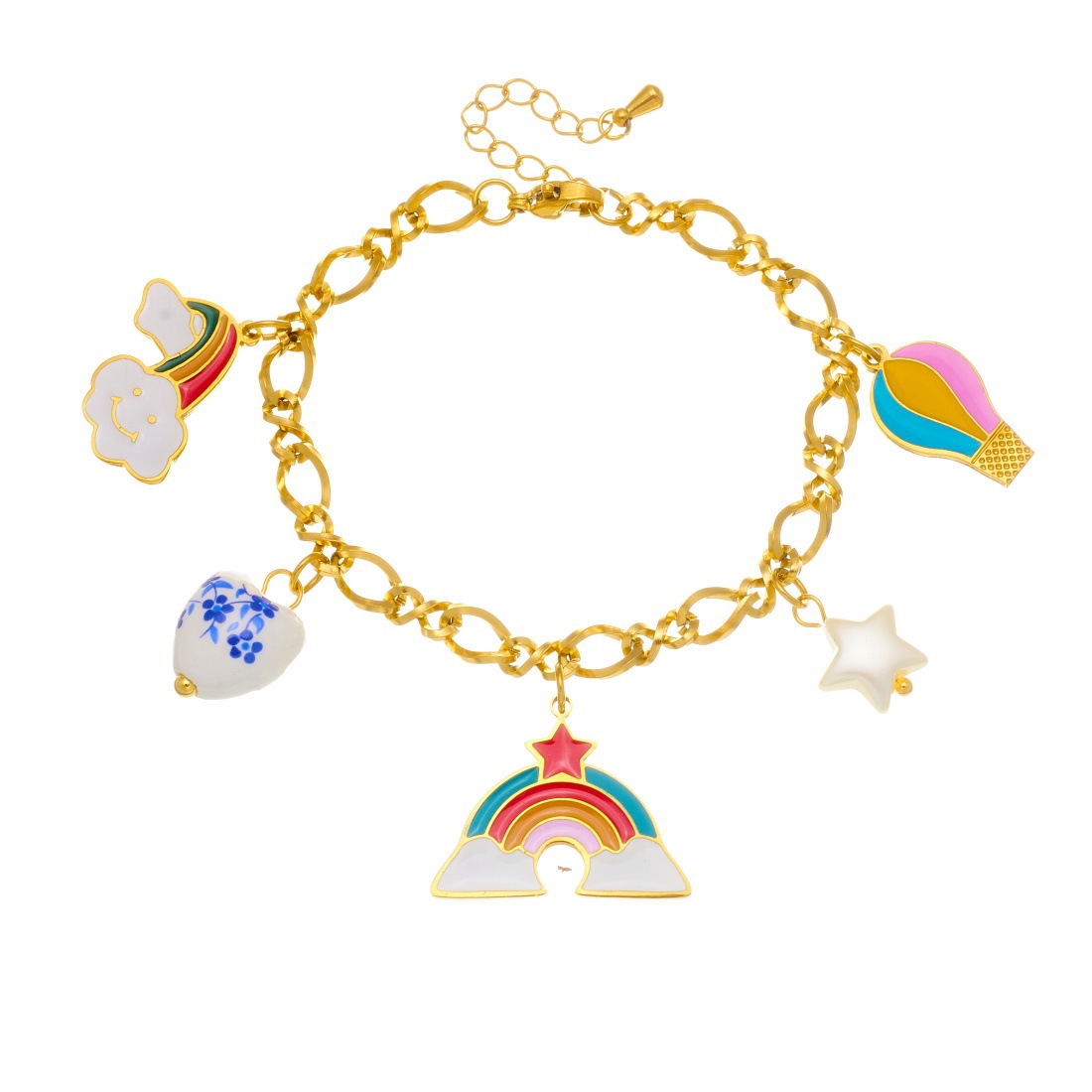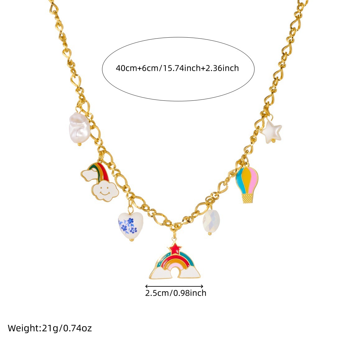 Home > New Arrival > Fashionable Cartoon Sweet and Cute Colorful Oil Drip Hot Air Balloon Rainbow Pendant Heart-Shaped Ceramic Accessories Jewelry Set