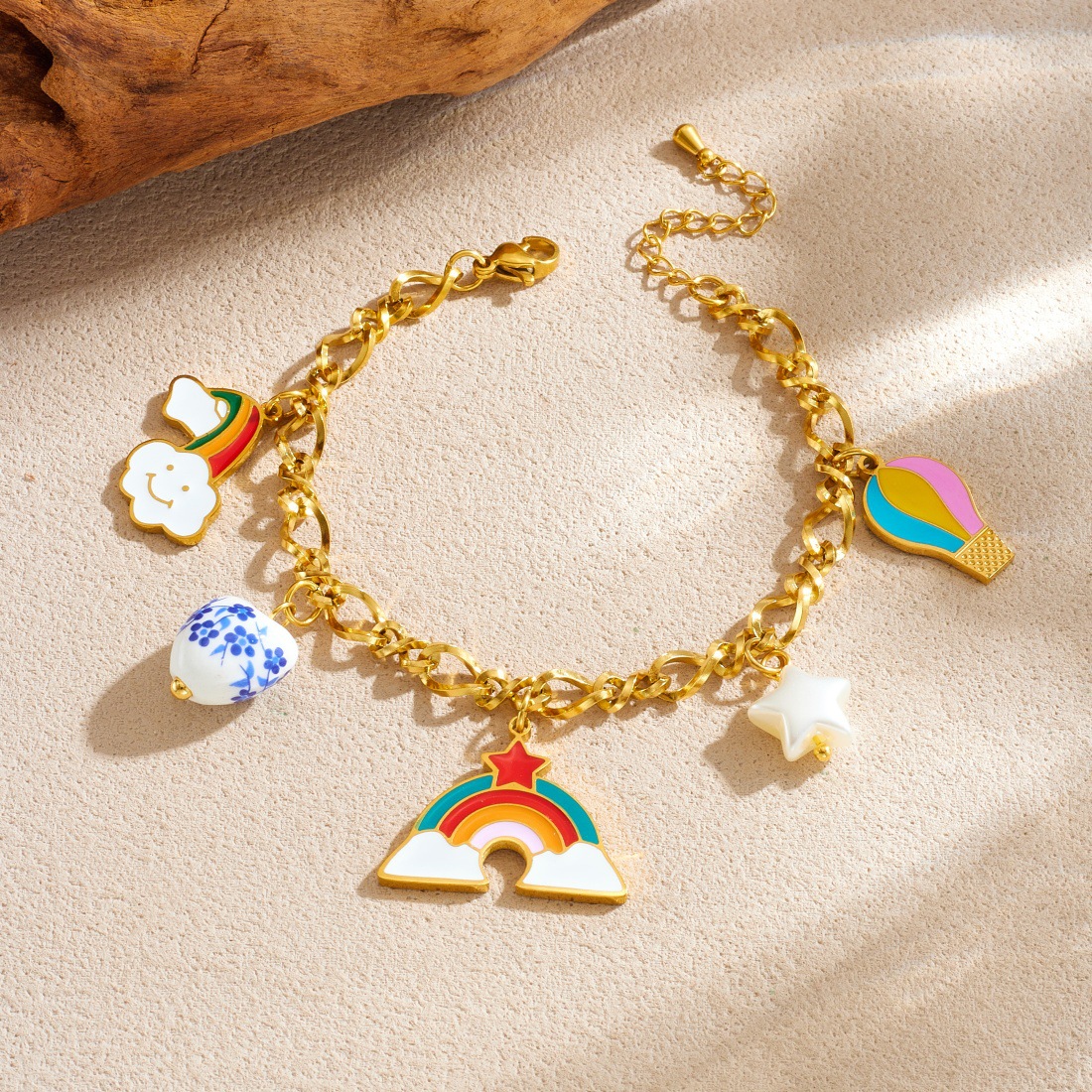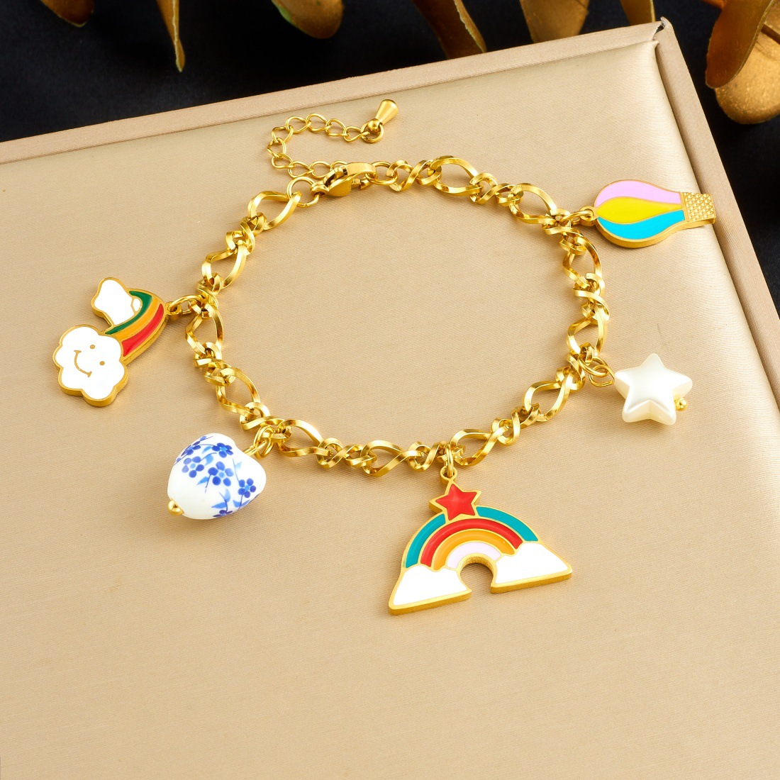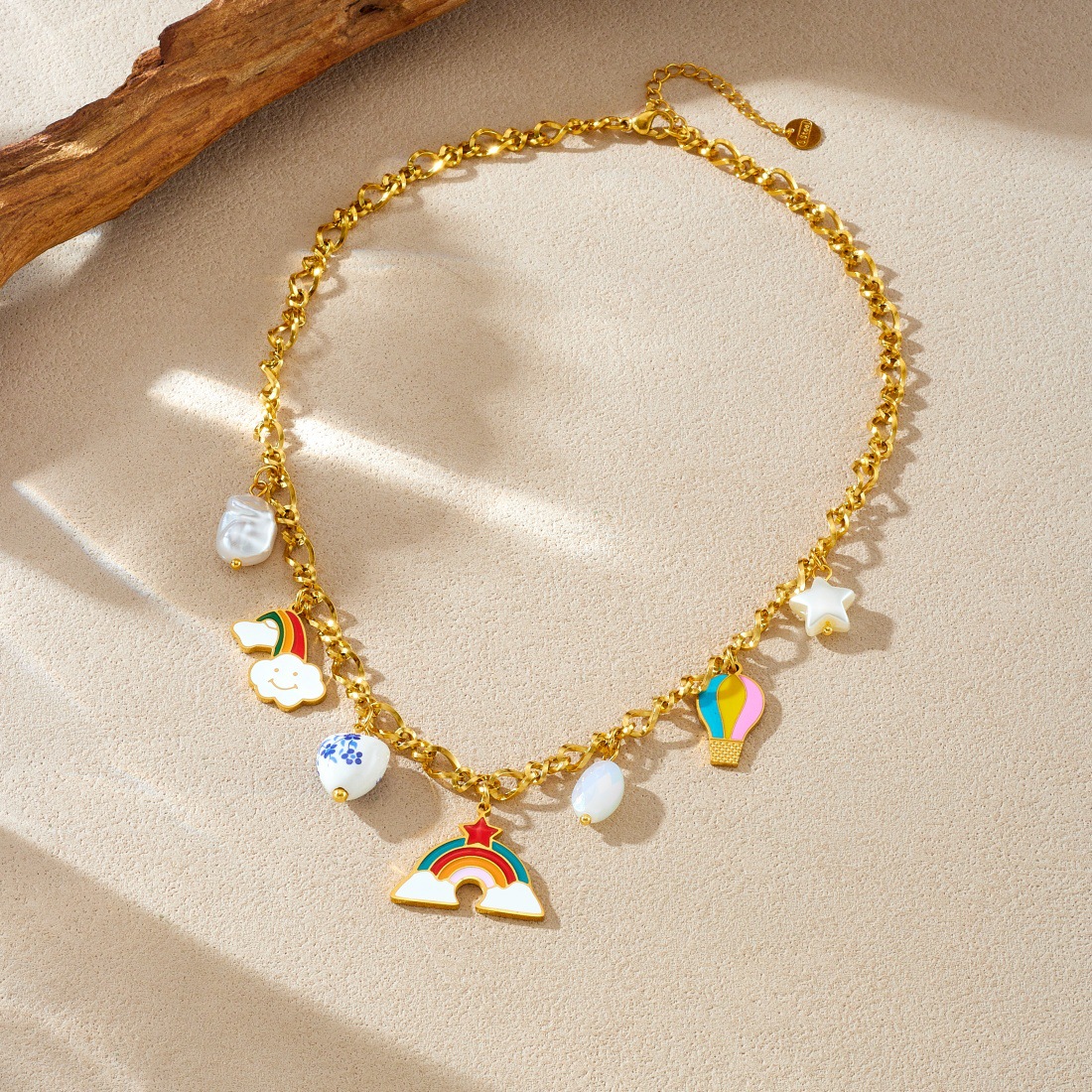 Home > New Arrival > Fashionable Cartoon Sweet and Cute Colorful Oil Drip Hot Air Balloon Rainbow Pendant Heart-Shaped Ceramic Accessories Jewelry Set