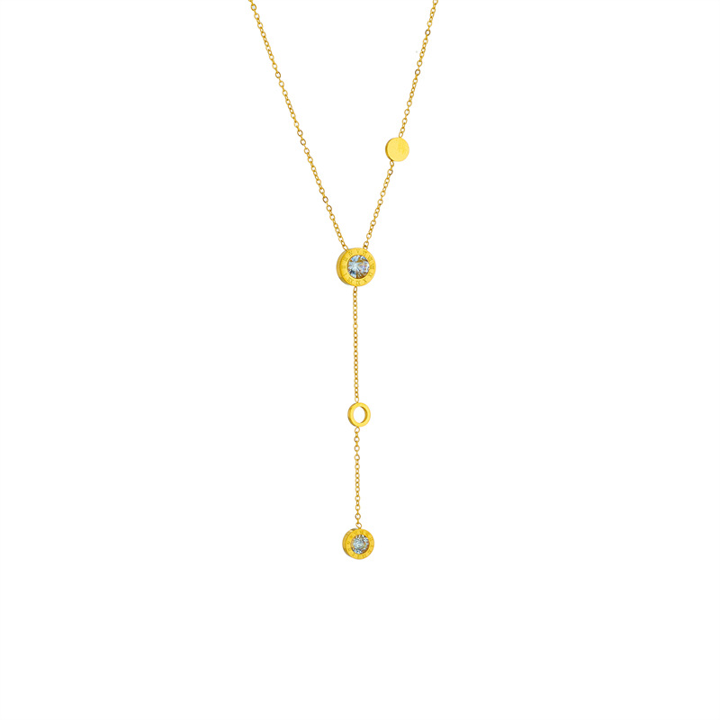 Fashionable long tassel rhinestone circle chain necklace, titanium steel, versatile metal jewelry, clavicle chain.