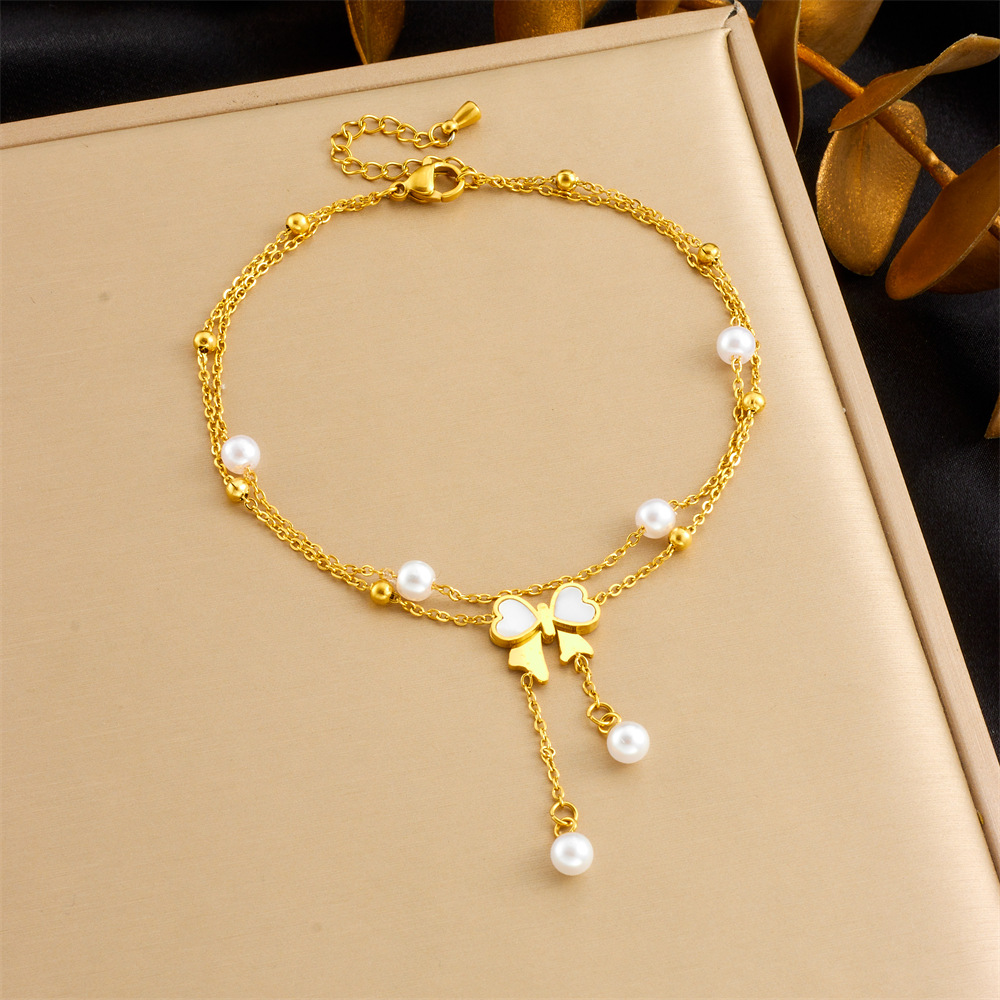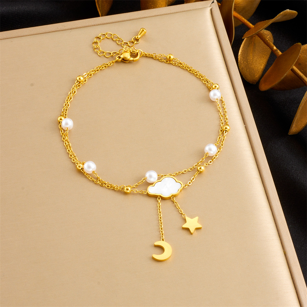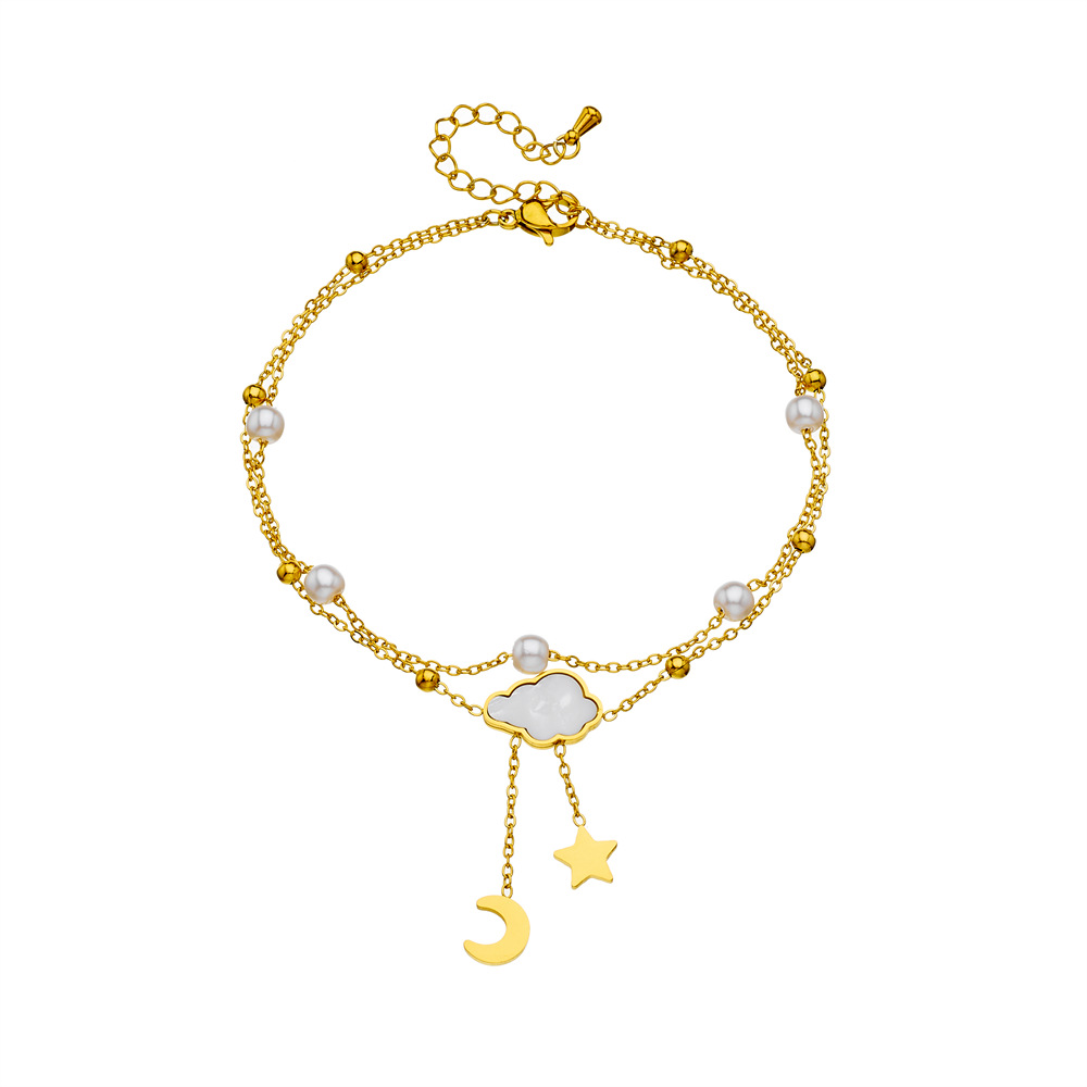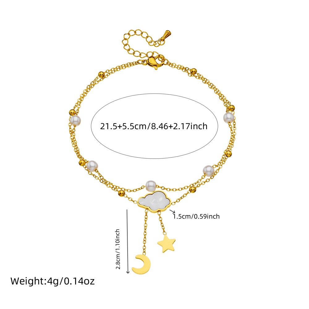 Fashionable new stainless steel pearl shell bow cloud star moon tassel chain anklet