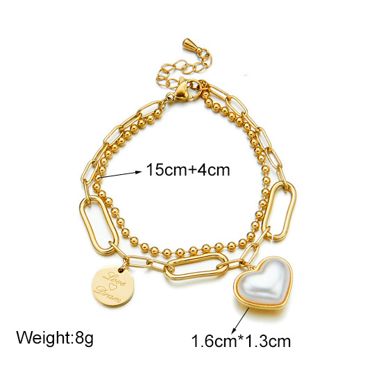 Home > New Arrival > Fashionable retro niche minimalist design irregular double-layer chain heart pearl engraved round pendant bracelet