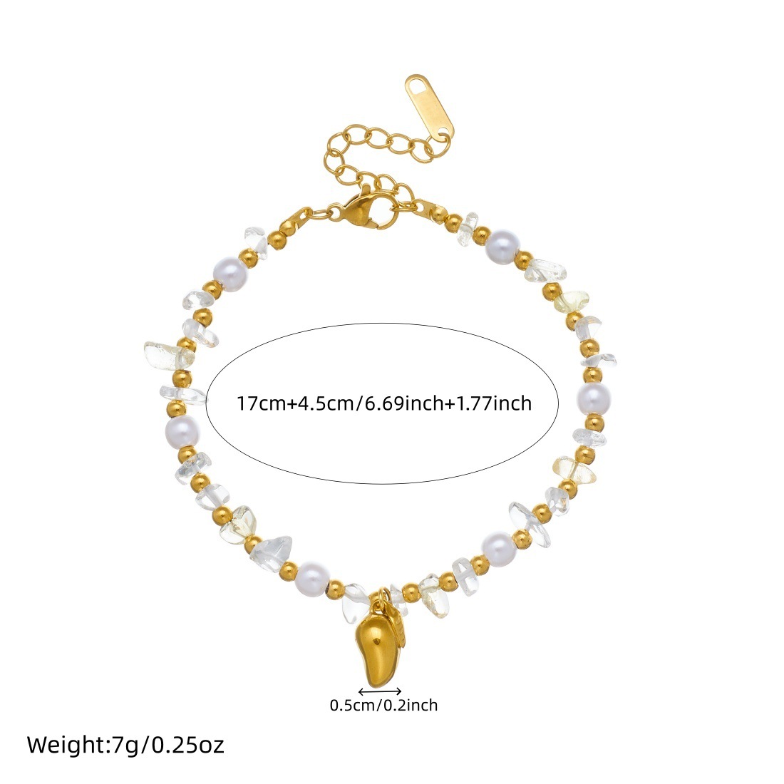 Home > New Arrival > Fashionable transparent pebble beaded chain, exquisite and simple gold-plated glossy teardrop pendant stainless steel bracelet