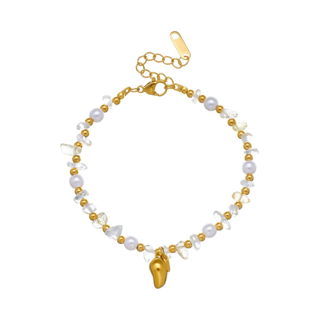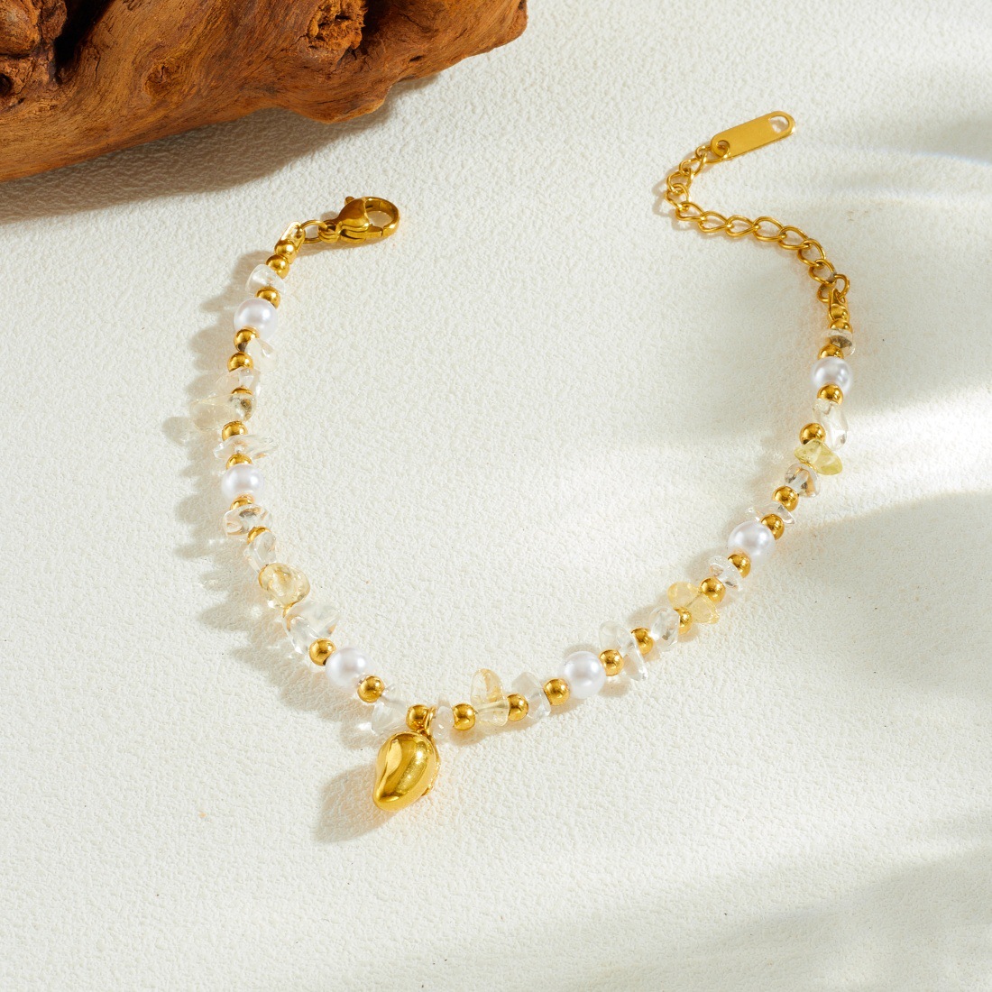 Fashionable transparent pebble beaded chain, exquisite and simple gold-plated glossy teardrop pendant stainless steel bracelet