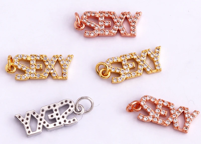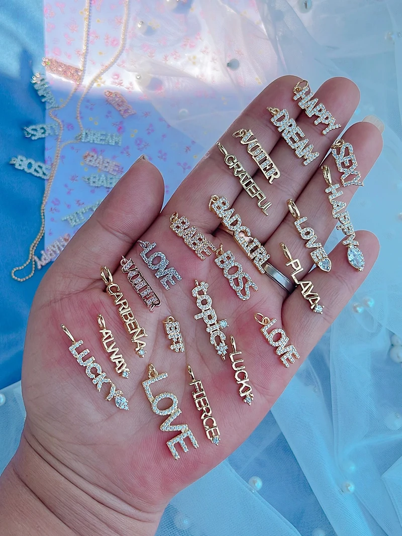 Fine Fashion Inlaid Zirconia LOVE HAPPY LUCKY Letter Charm Pendant,Trendy Jewelry Necklace Accessories Hand Making Supplies M22 K33