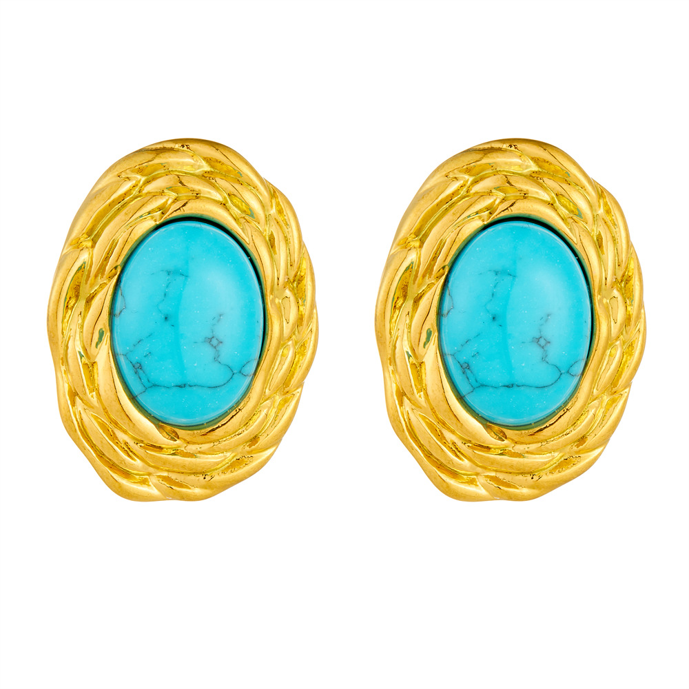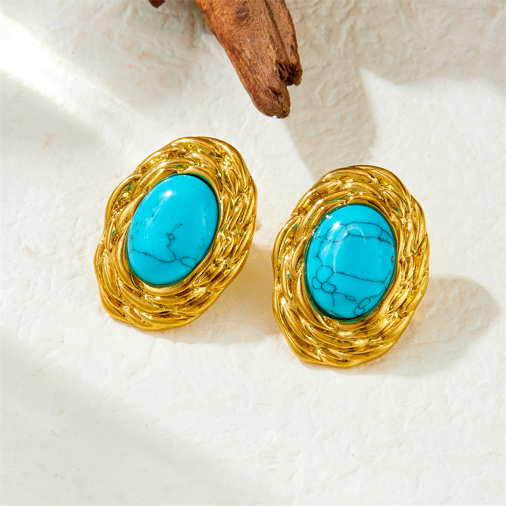 Home > New Arrival > French retro design twisted oval blue turquoise accessory ring earring necklace set