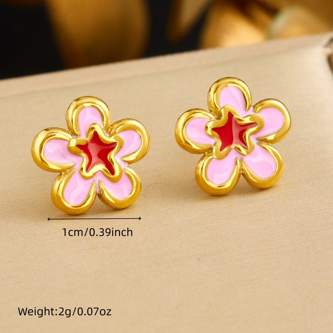 Home > New Arrival > Fresh and sweet pink floral jewelry set with gold-plated peach blossom accessories and clavicle chain.