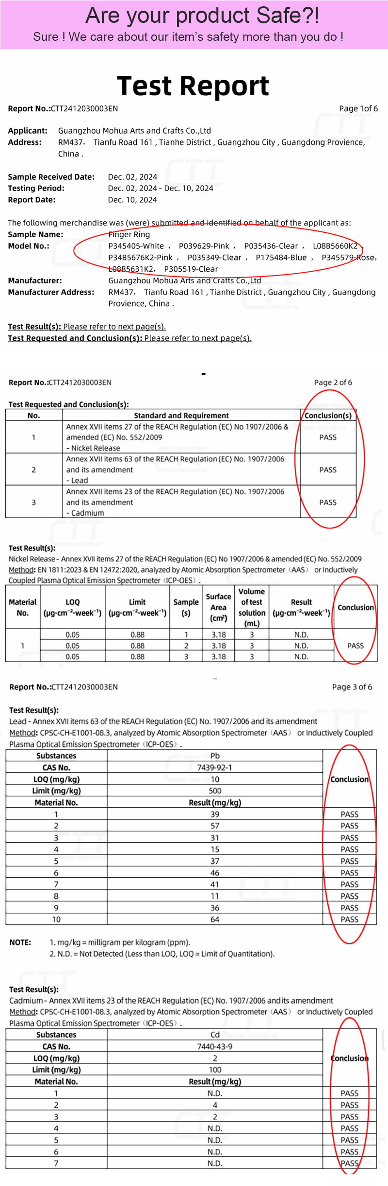- Lead Free, Nickel Free, Cadmium Free