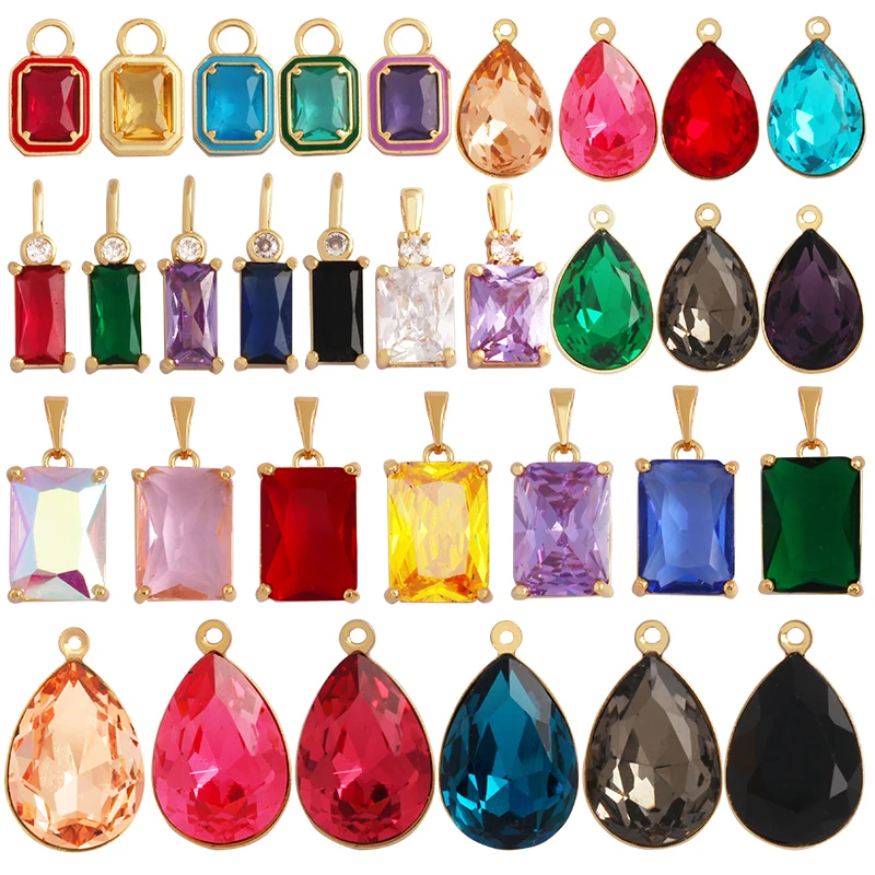 Home > Pendants and charms > Geometry Bezel Charm Pendant with Glass,Earring Attachment,18K Gold Plated CZ Micro Pave Jewelry Findings Accessories Supplies K39